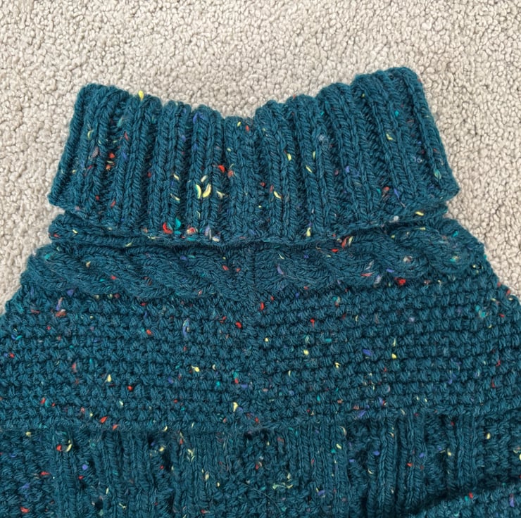 Teal Medium Dog Coat With Poo Bag Pocket Hand Knitted (J128)