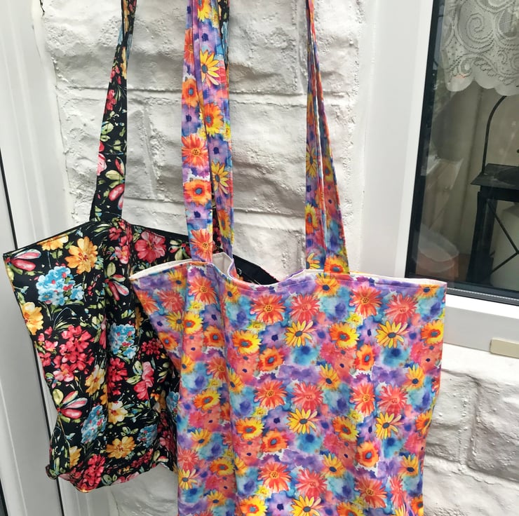 Reusable eco friendly bags to keep plastic bags out of landfill. Easily folded to keep handy