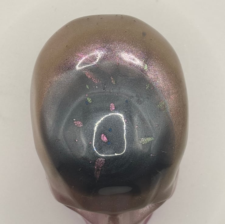 I wanted to make a gorgeous pink shimmery skull with a vibrant pink base. The black shimmer top was a bit of an experiment as I didn’t know what it would turn out like but I think it turned out pretty