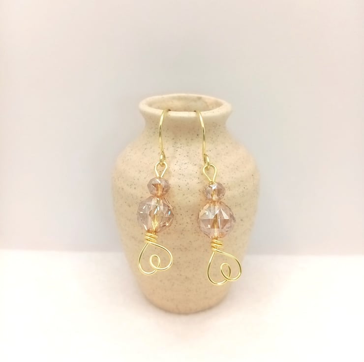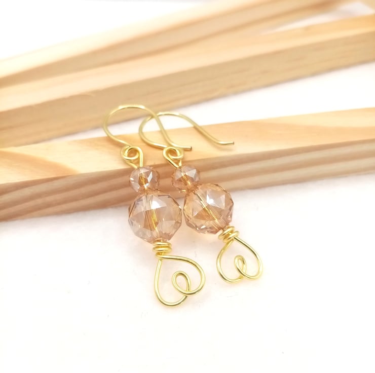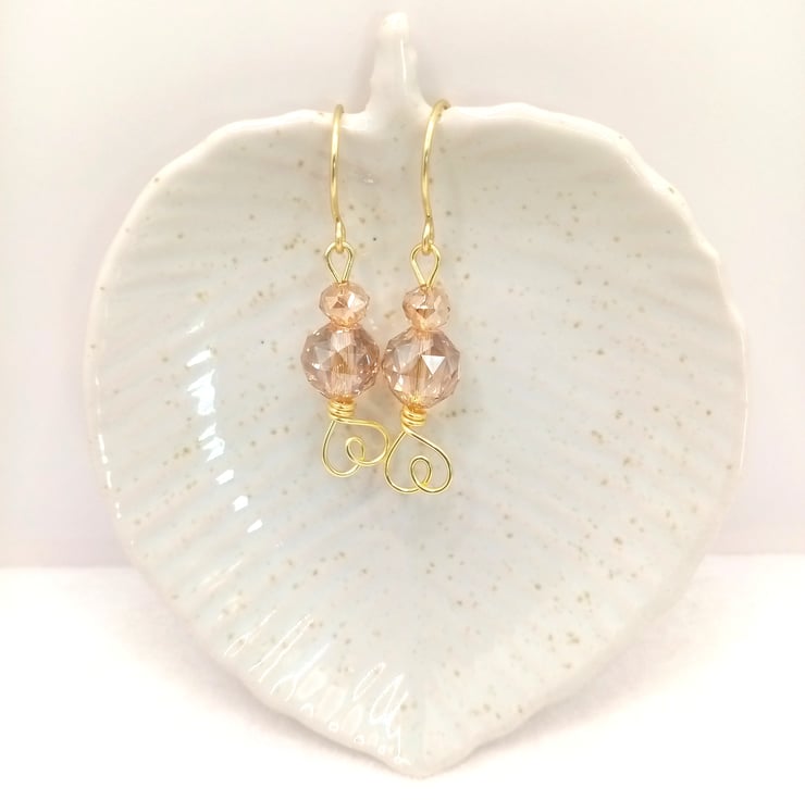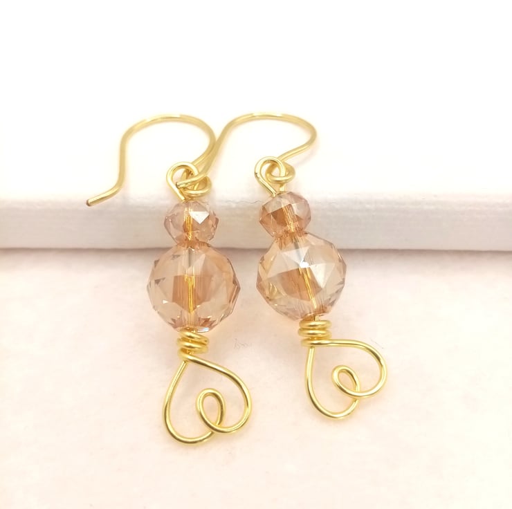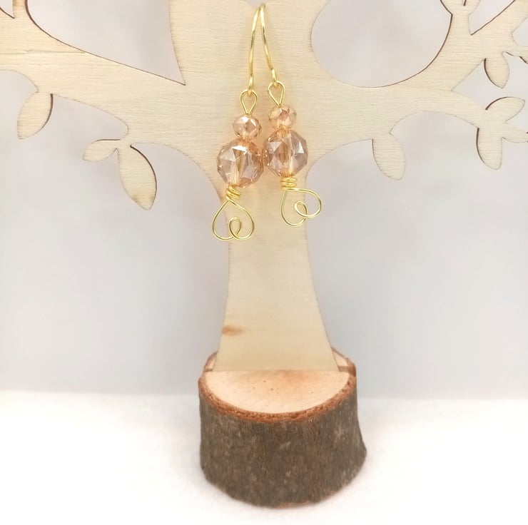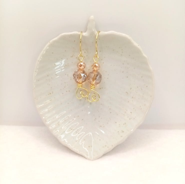Faceted crystal glass bead drop-earrings in a charming champagne gold colour.