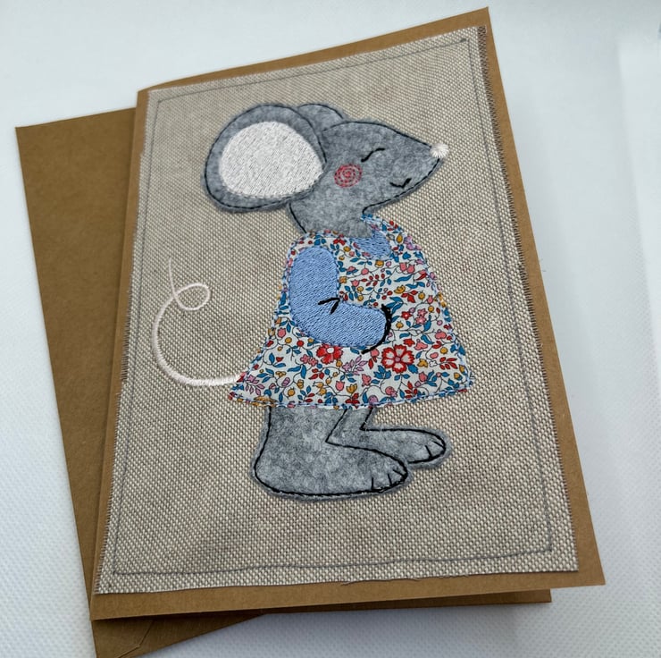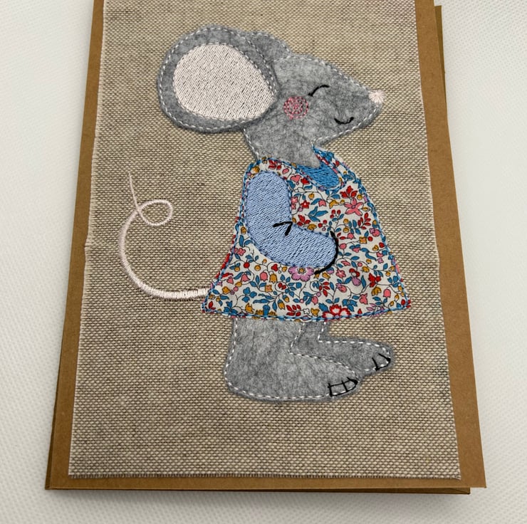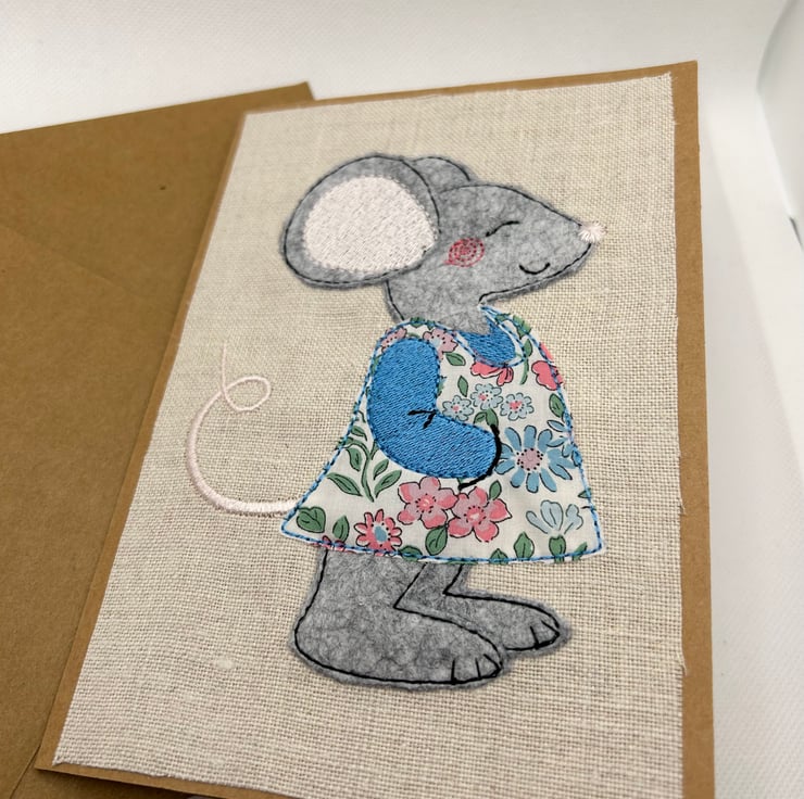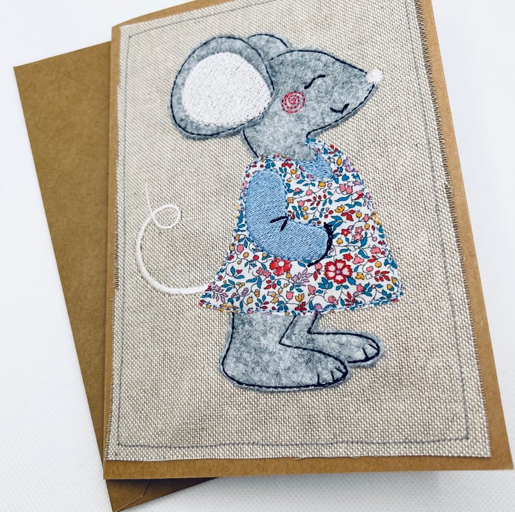 Miss Liberty Mouse is a special card embroidered applique on calico and mounted on brown card, blank inside for your own message