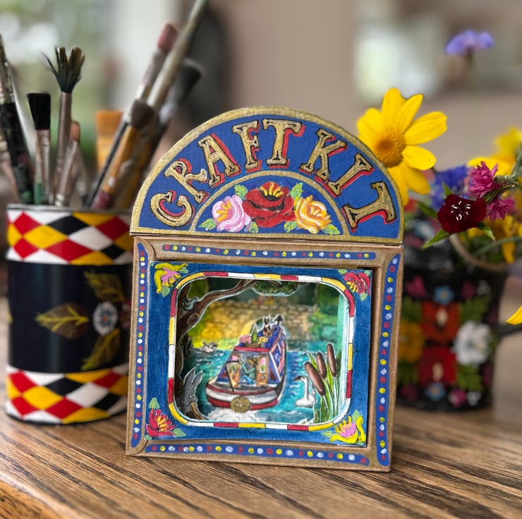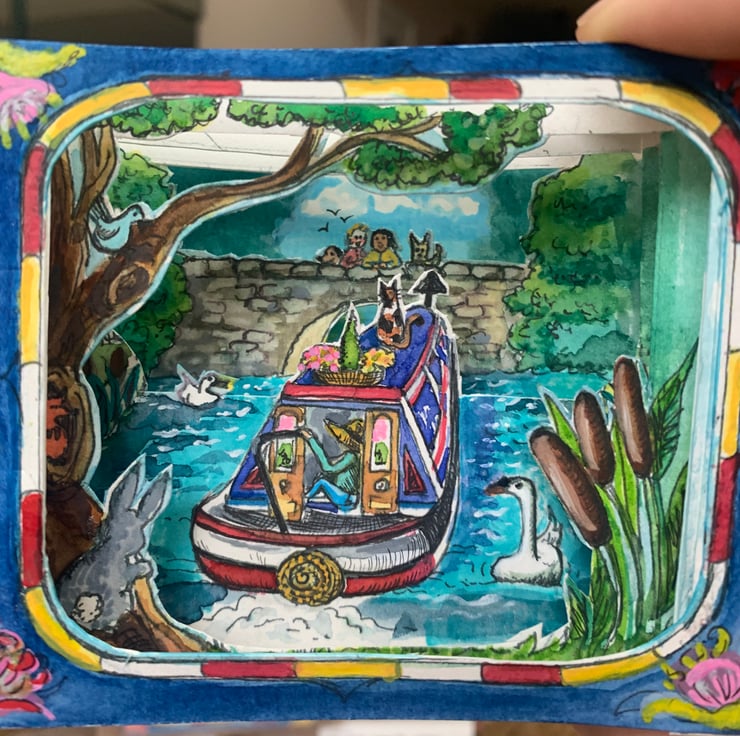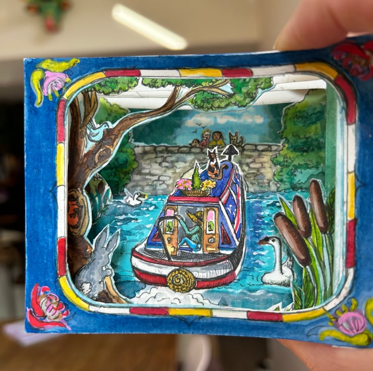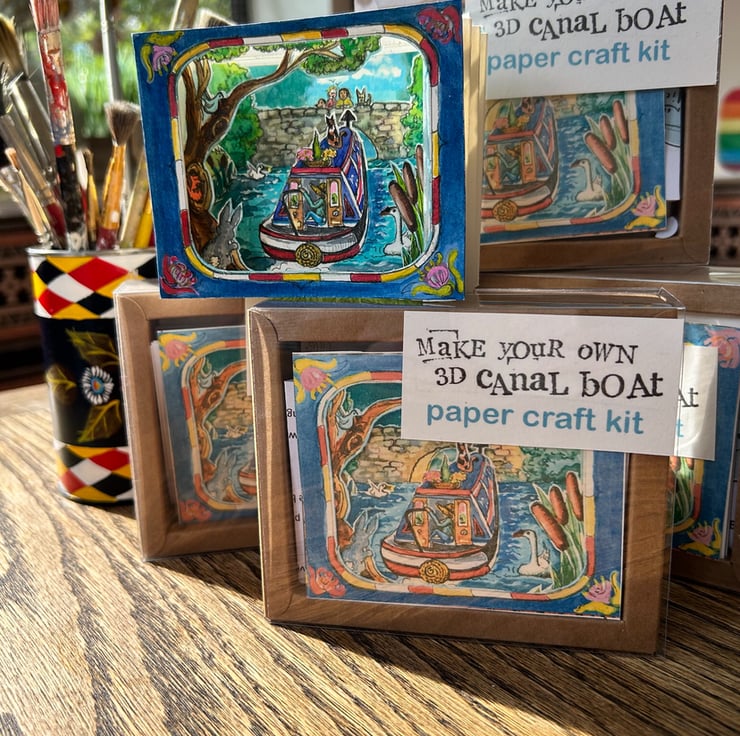 3D Canal Boat Craft Kit - Make It Yourself pop-up scene, paper cut craft kit