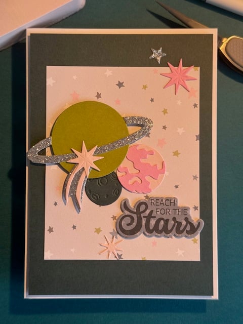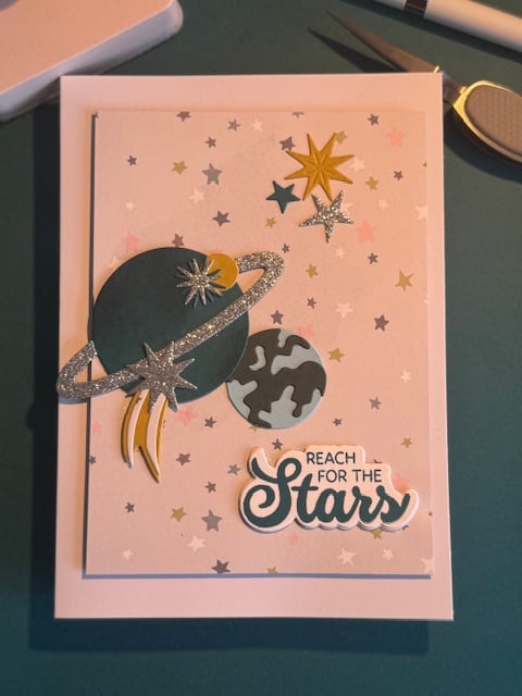 A handmade, unique space-themed card