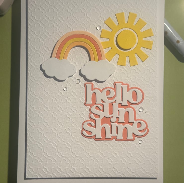 Handmade and unique Rainbow cards. The backgrounds are embossed for texture. Spring colour pallette used. Can be made in other colours with other sentiments - you choose.
