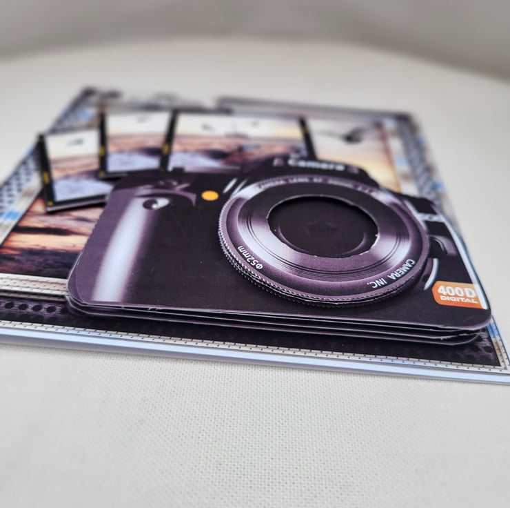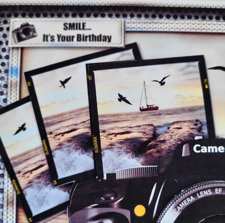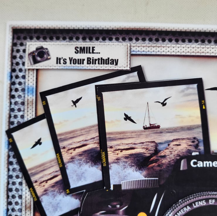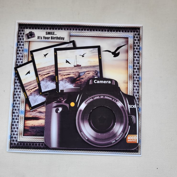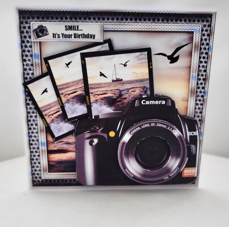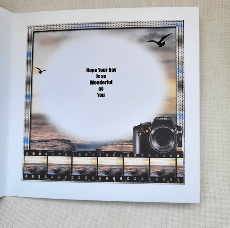 A perfect card for someone who enjoys photography. This card measures approx 7x7 inches.