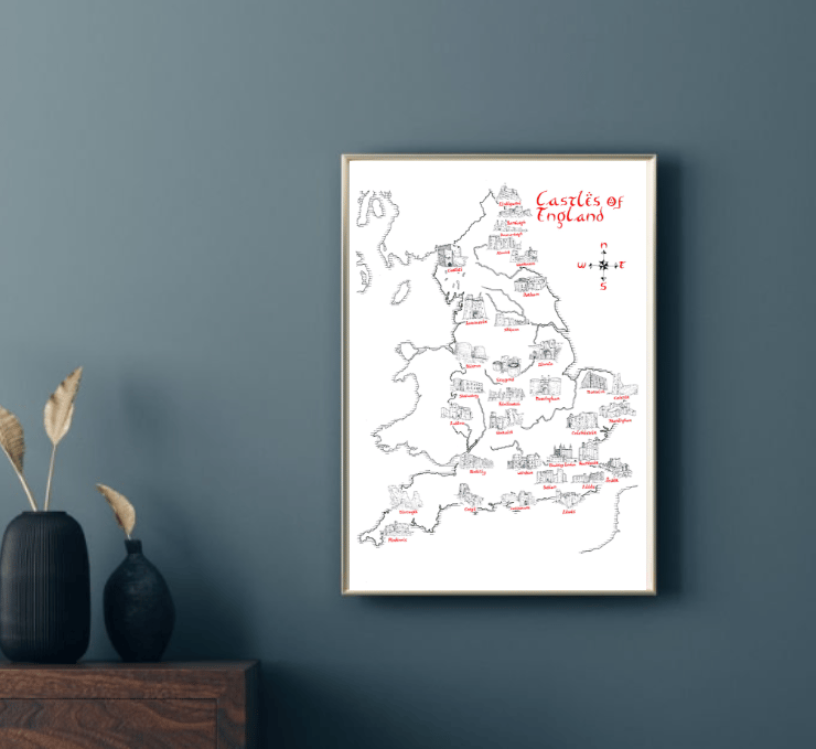 Map of the Castles of England Hand Drawn Tolkien Style Map Artwork