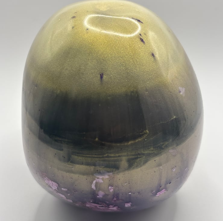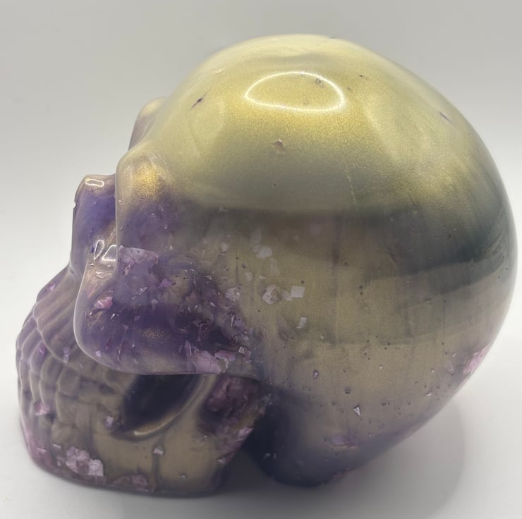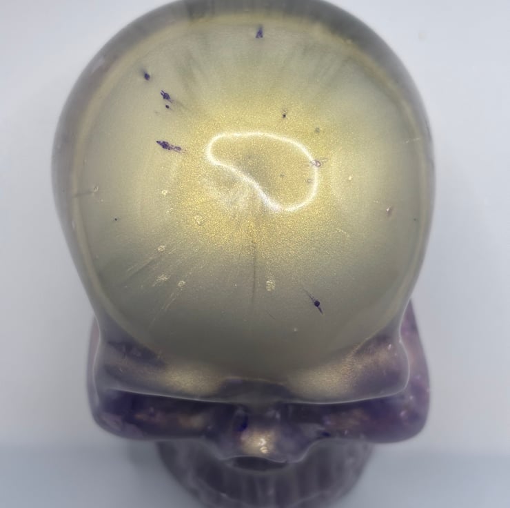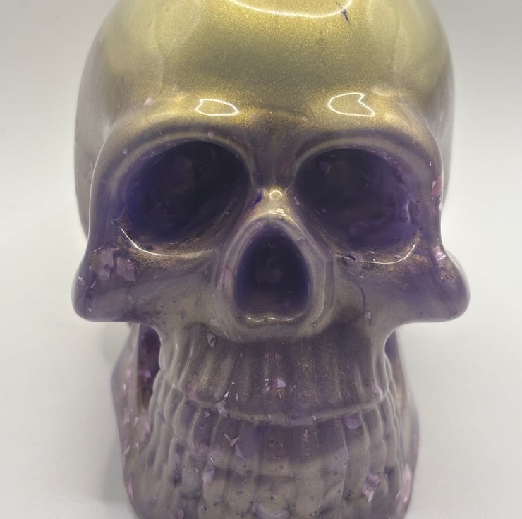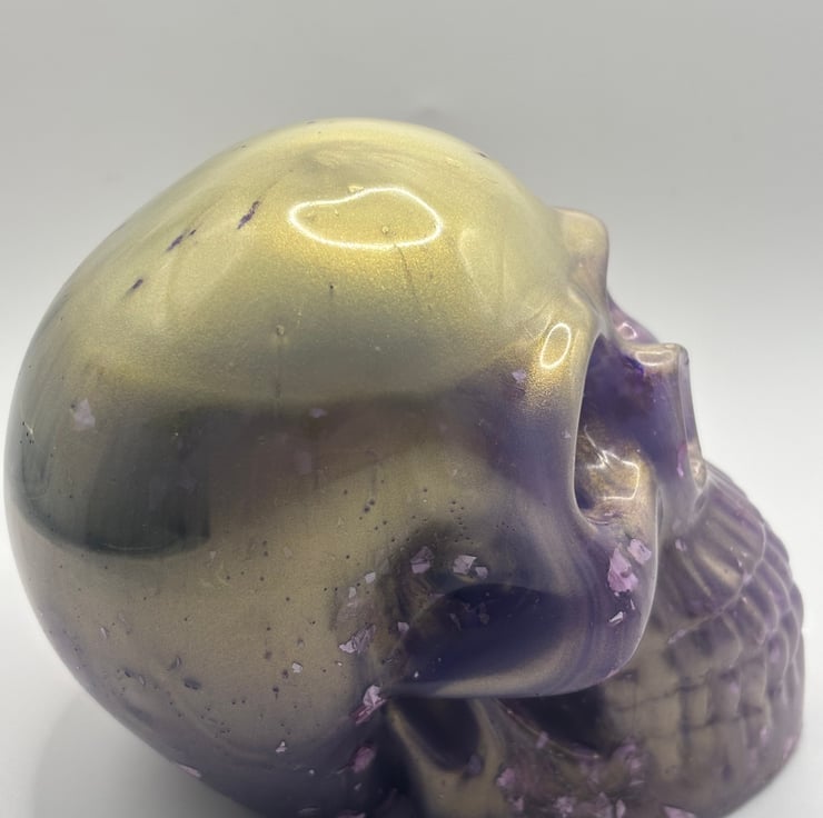 Beautiful purple and cream coloured pearlescent skull with purple gold leaf flakes.
