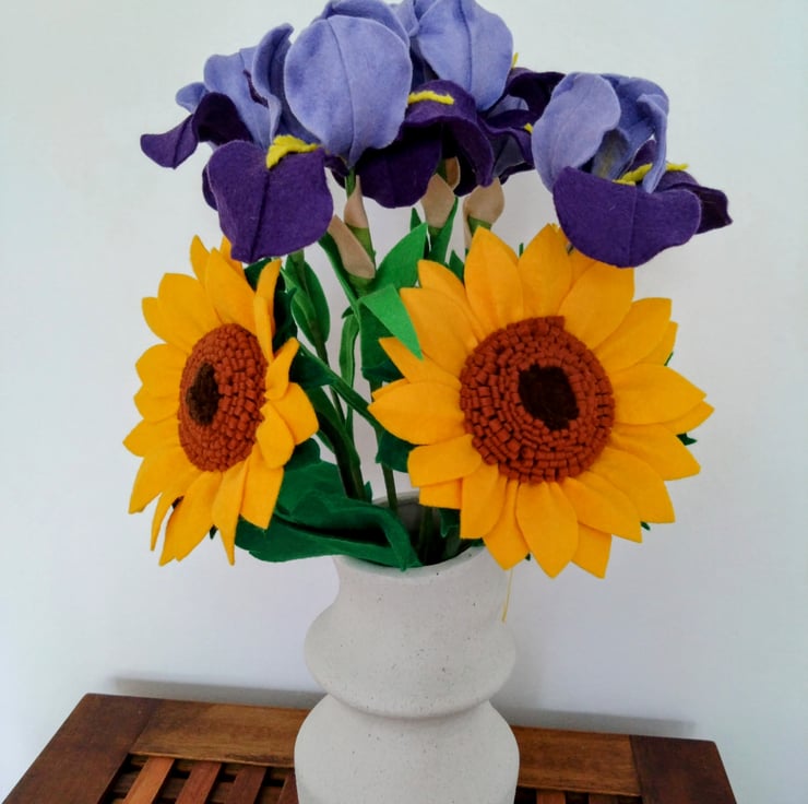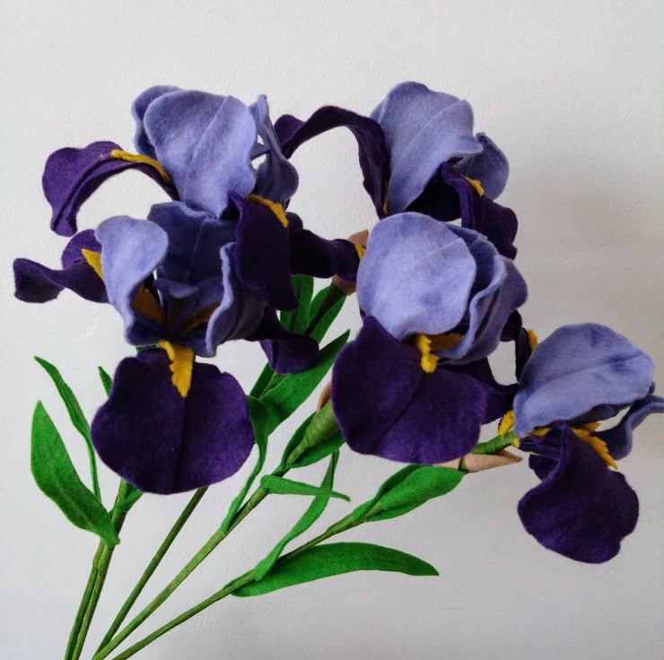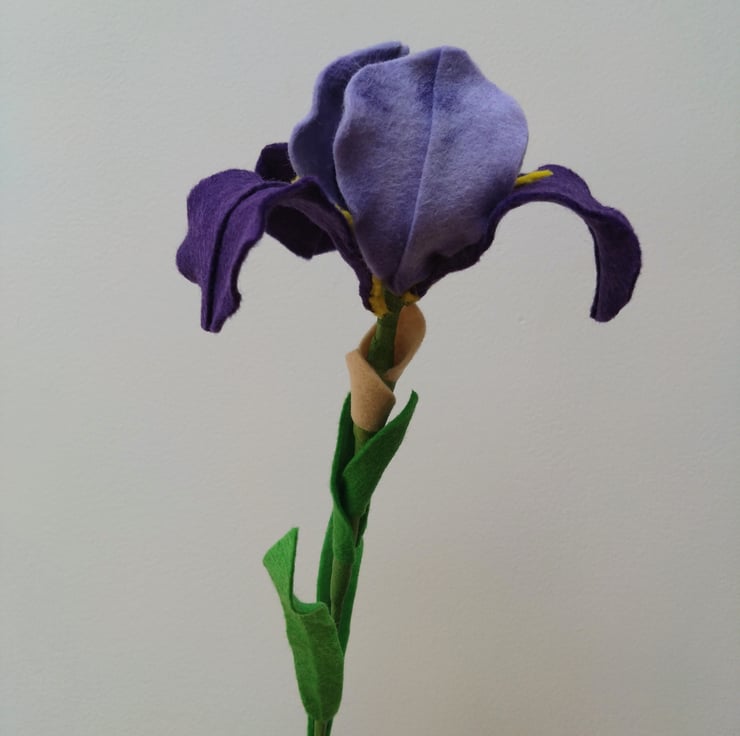 Beautiful iris that will never wilt. Each piece is made with care and attention to detail so there is a slight variation.