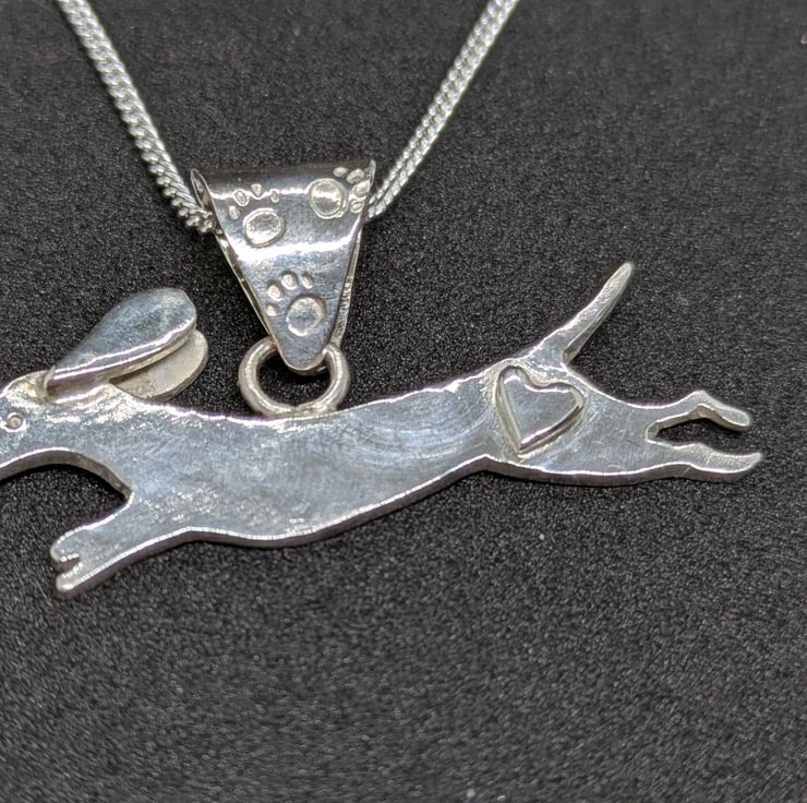 Inspired by my cockapoo's good friend Winnie, I hope this sterling silver captures some dachshund speed and spirit. Hand saw pierced from 1.2mm sterling silver sheet, this little dachshund features a hand saw pierced silver heart because who doesn't love a dachshund. The pendant hangs from a handmade sterling silver bail, stamped with paw prints. This would make an ideal gift for any dachshund enthusiast or dog lover.