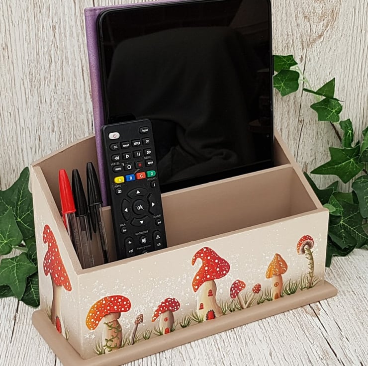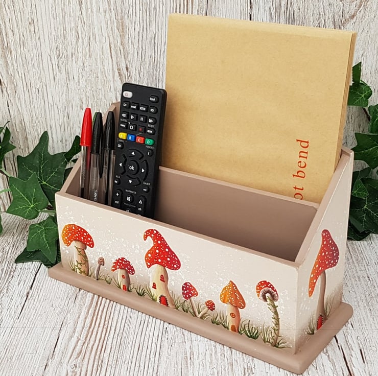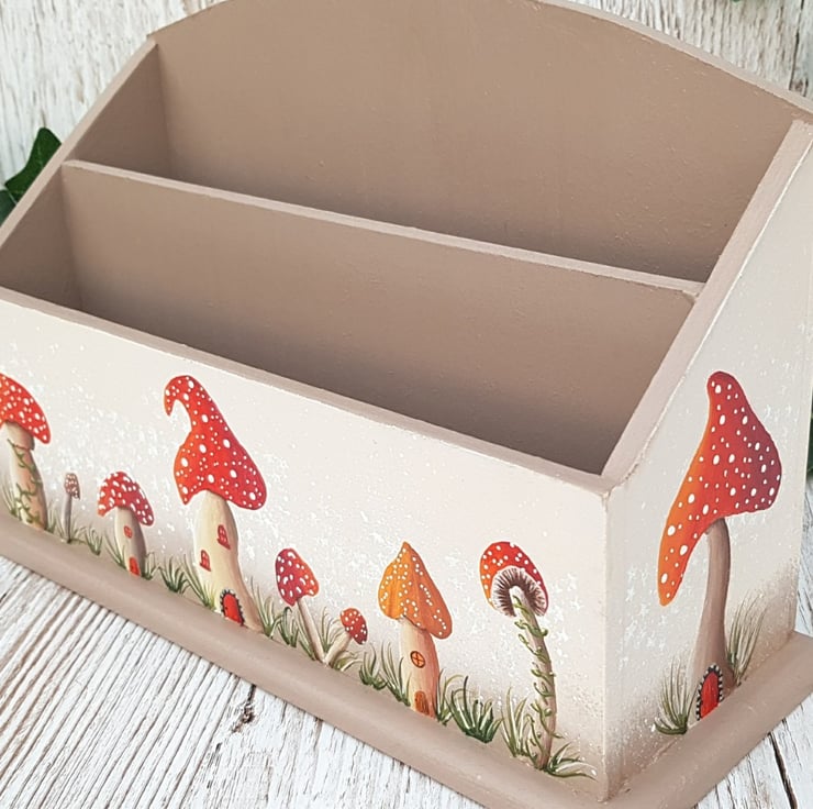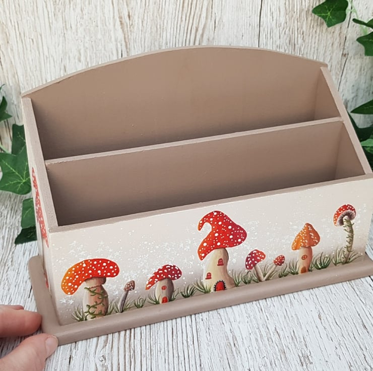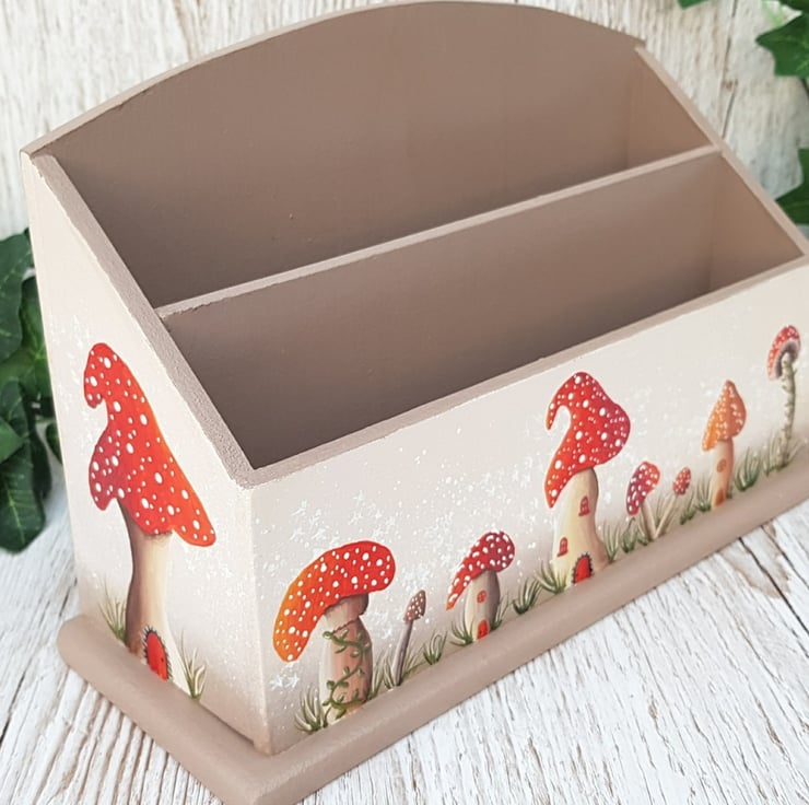 Add a whimsical touch to your home with this hand painted mushroom themed letter rack, part of my Magical Mushrooms range. It's more than just a letter rack, it's a colourful, functional organiser or desk tidy with endless uses!