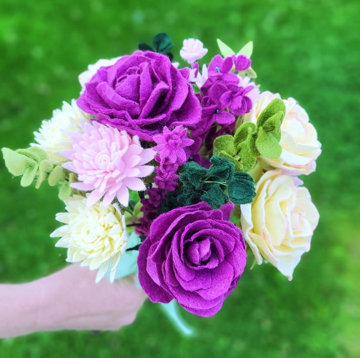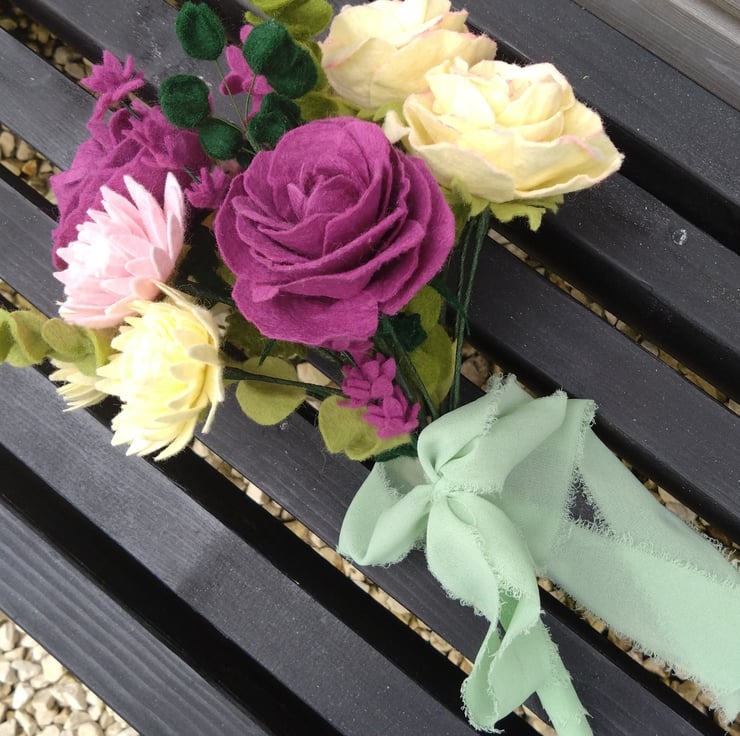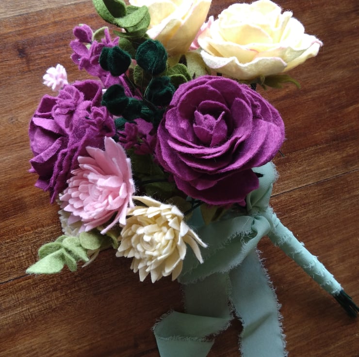 Whatever bridal flowers you require, I can make them from felt. Ideal for weddings abroad as they can be packed in a case and wont wilt in hot weather and you can keep them forever. Please contact me with your favourite flowers and requirements to make the bouquet of your dreams. Price on request, starting at £90.00. Please allow up to one month for me to make your bouquet.
