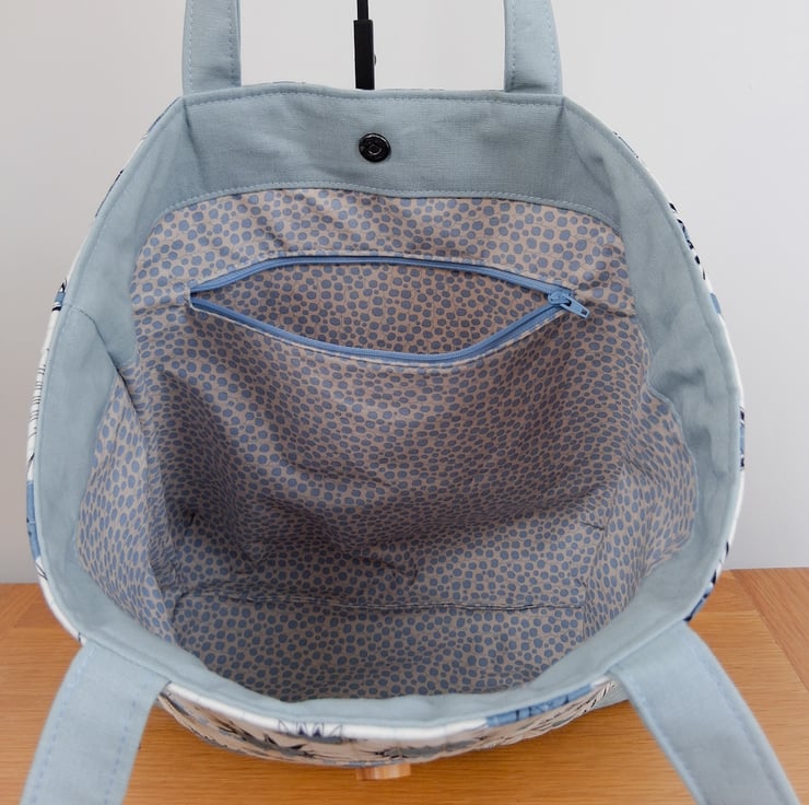 Inside the bag you will find the lining, which is a co-ordinating blue print 100% cotton fabric by Tilda.
