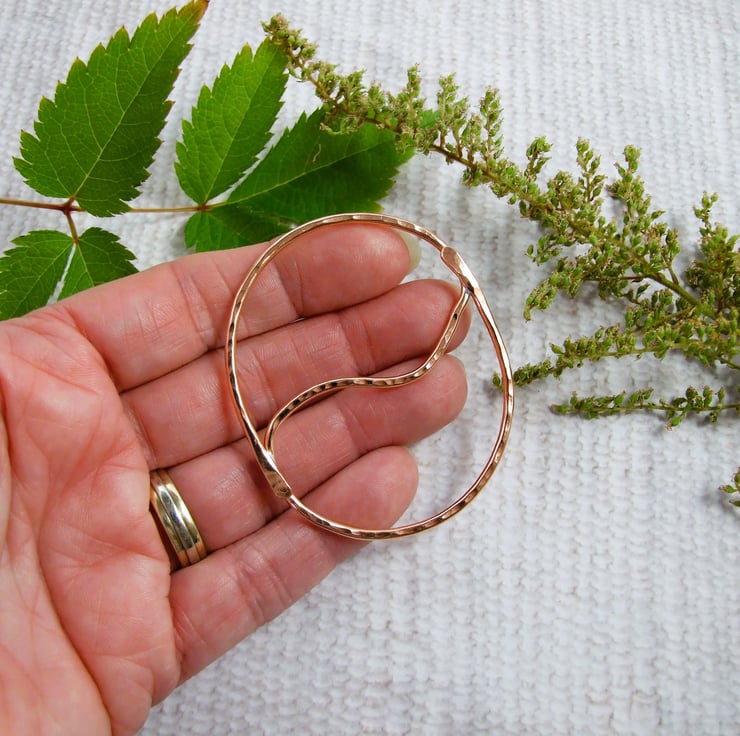 The buckle is hand forged from 2mm solid copper wire with hammered texture. I have shaped into an oval from a single piece of wire and secured by overlapping the ends and soldering.