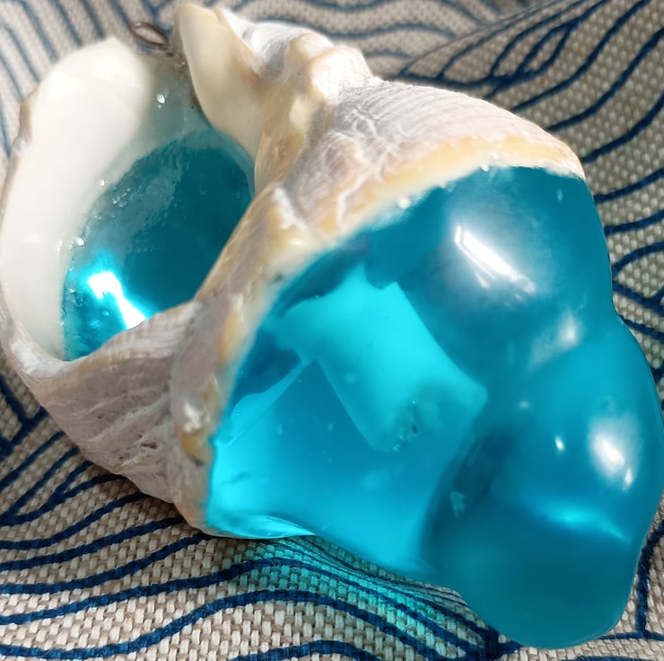 The shell cradles a pool of shimmering resin that seems to swirl with stories of ocean spray and barefoot wanderings. A clear favorite for anyone who knows the magic of the beach.