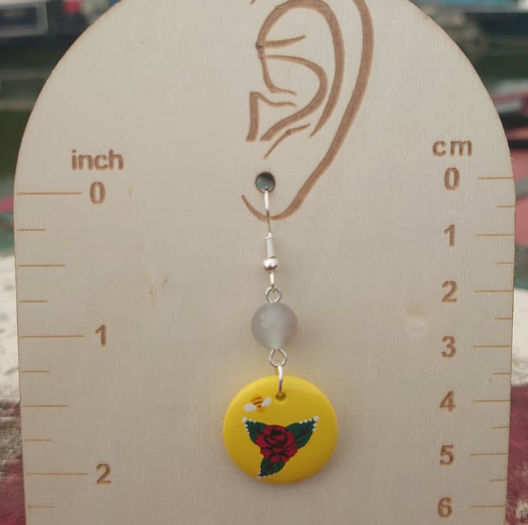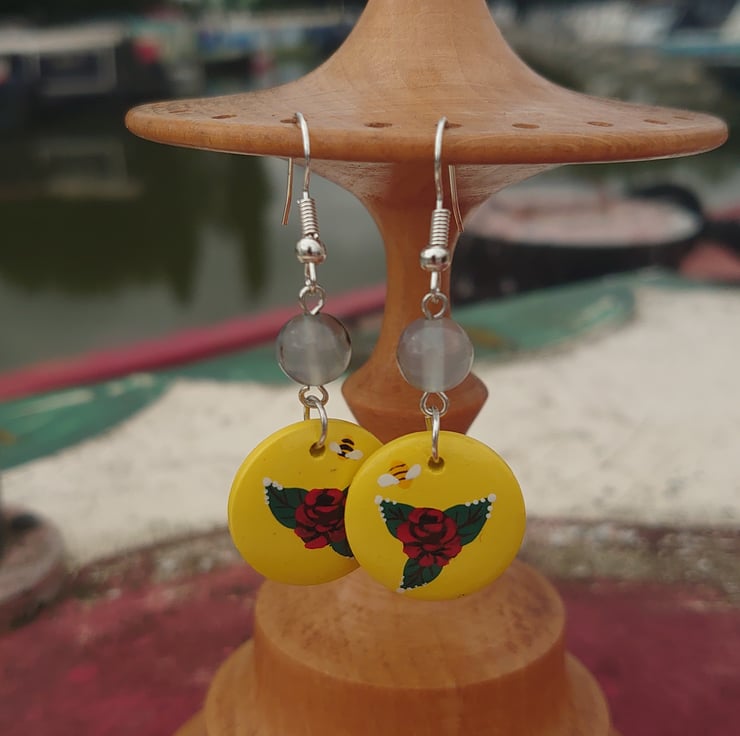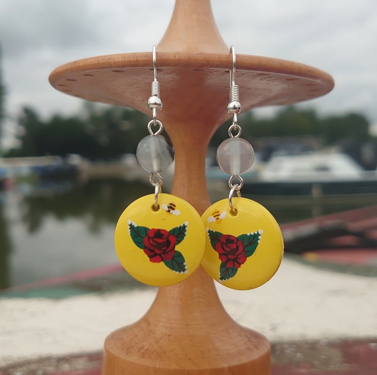 These lightweight wooden earrings are handpainted in the traditional style of the British canals.