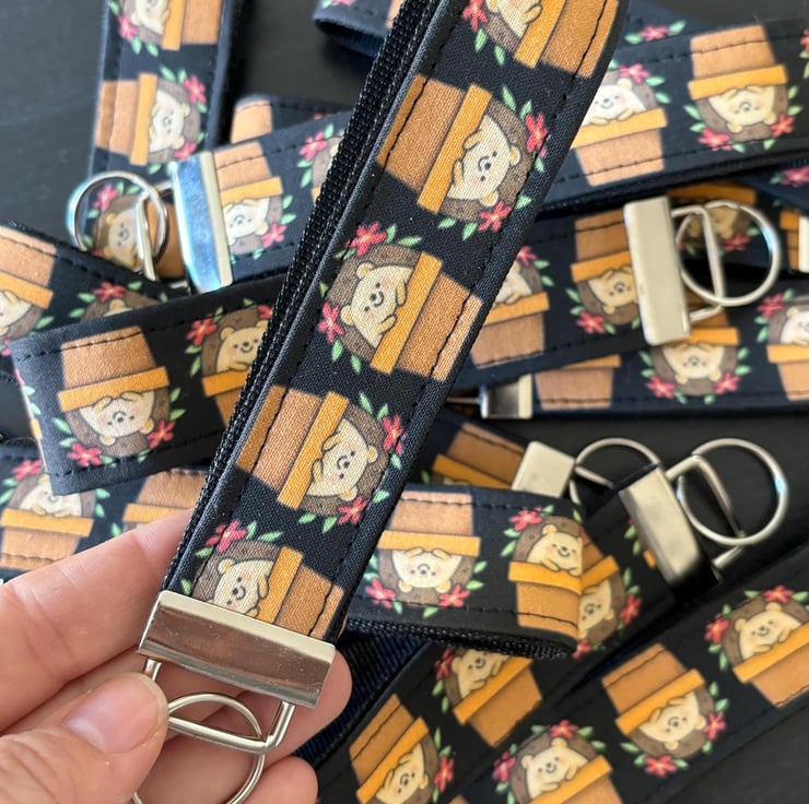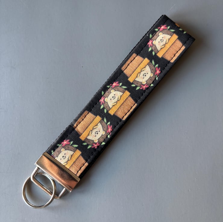 You're going to huff with excitement when these adorable hedgehog wristlet wristlets arrive. The hedgehog pattern is on the front with black strap on the inside. The wristlet is made from quality cotton fabric, strengthened with interfacing and sewn to thick strapping making it very durable for every day use.