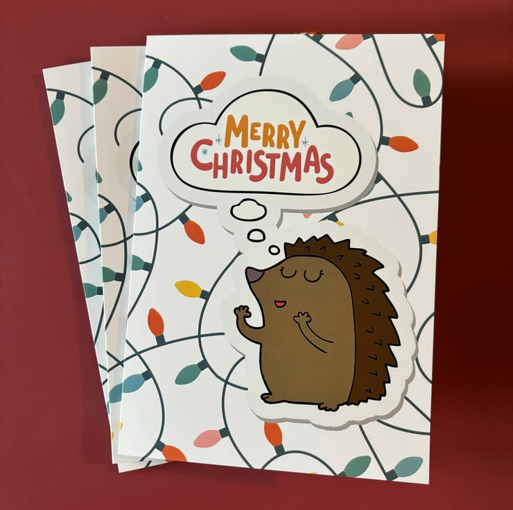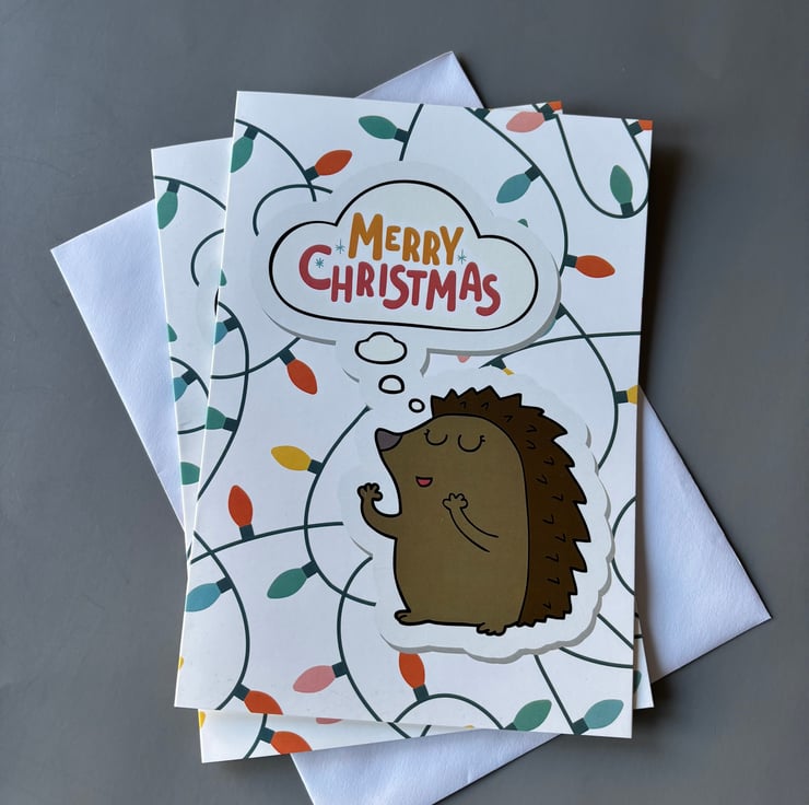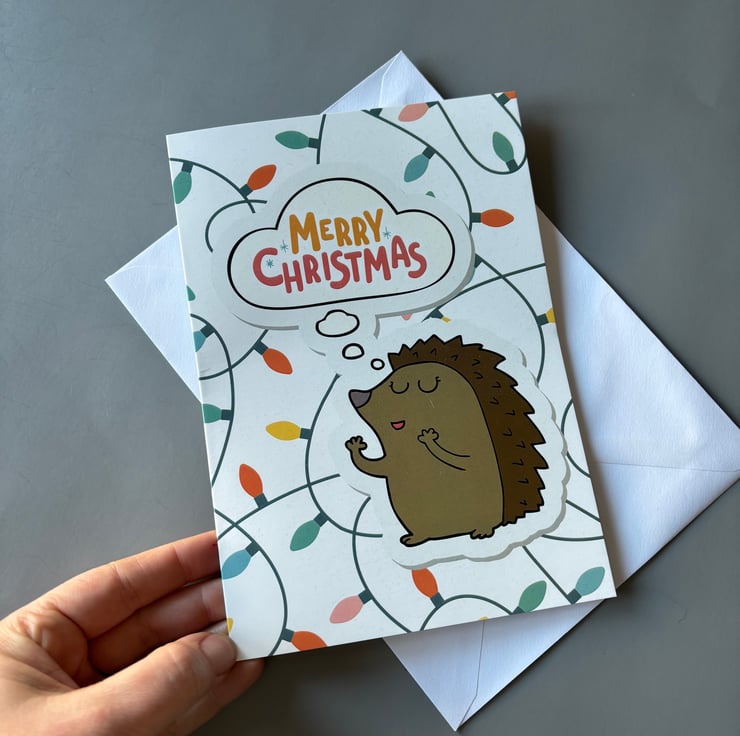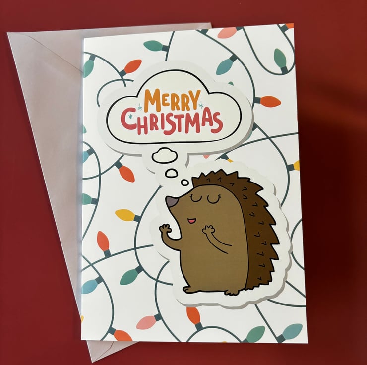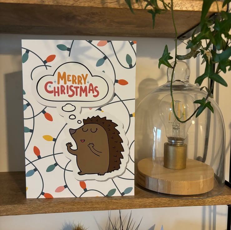 Merry Christmas hedgehog card to send to friends and family this festive season.