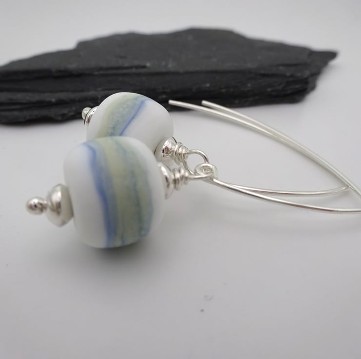 A pair of sterling silver earrings which feature handmade lampwork glass beads.