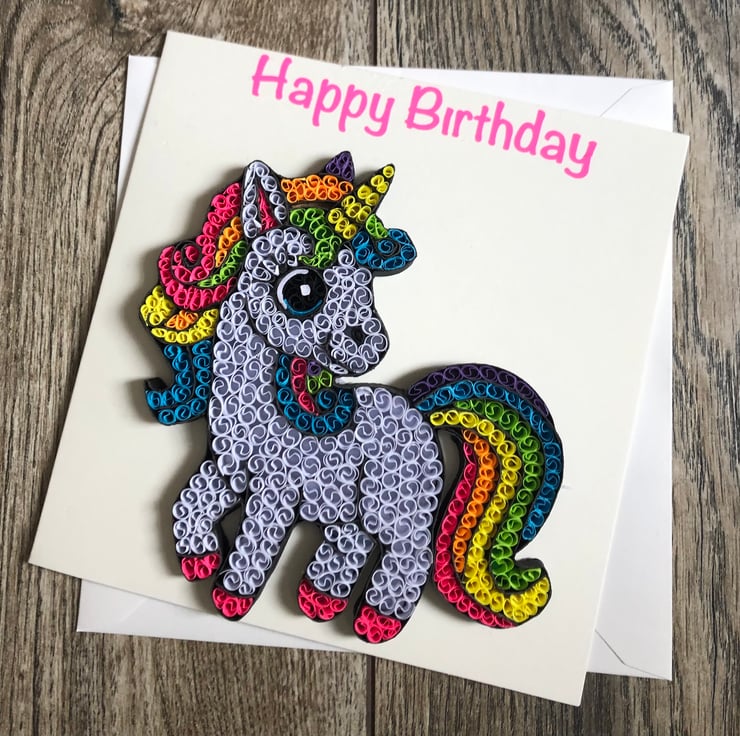 Stunning handmade quilled unicorn card