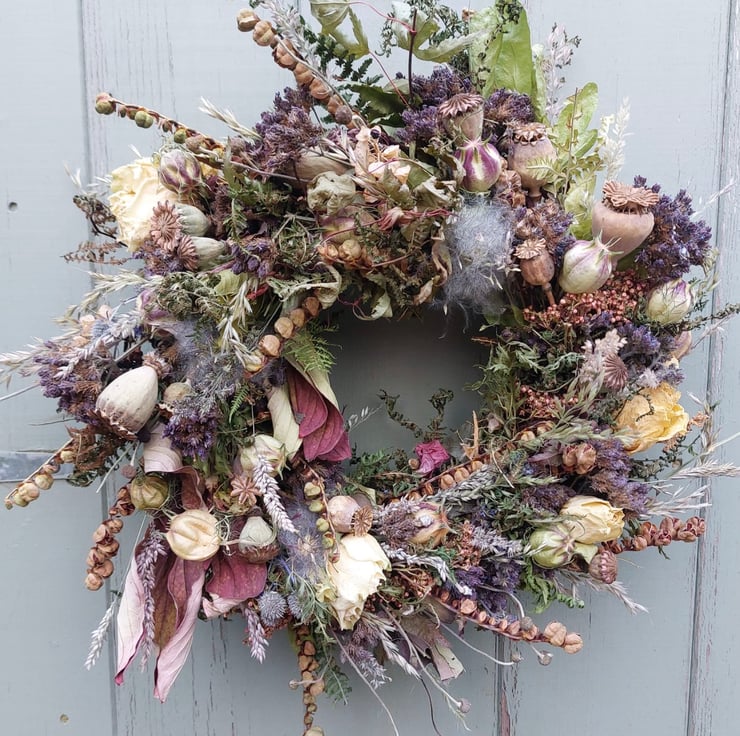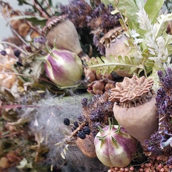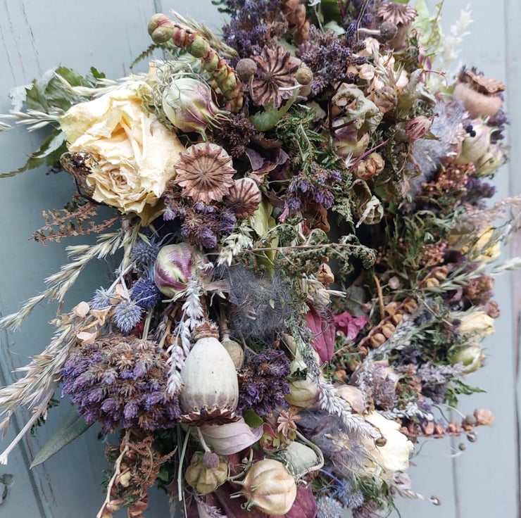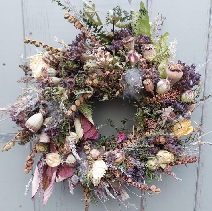 This is a unique wreath packed full of a variety of different seed heads and foliage. No two wreaths we make are the same.