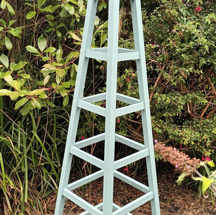 The finished obelisk is then sanded before being given at least 3 coats of either woodstain or exterior coloured wood paint.
