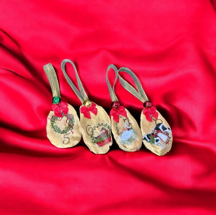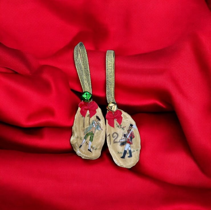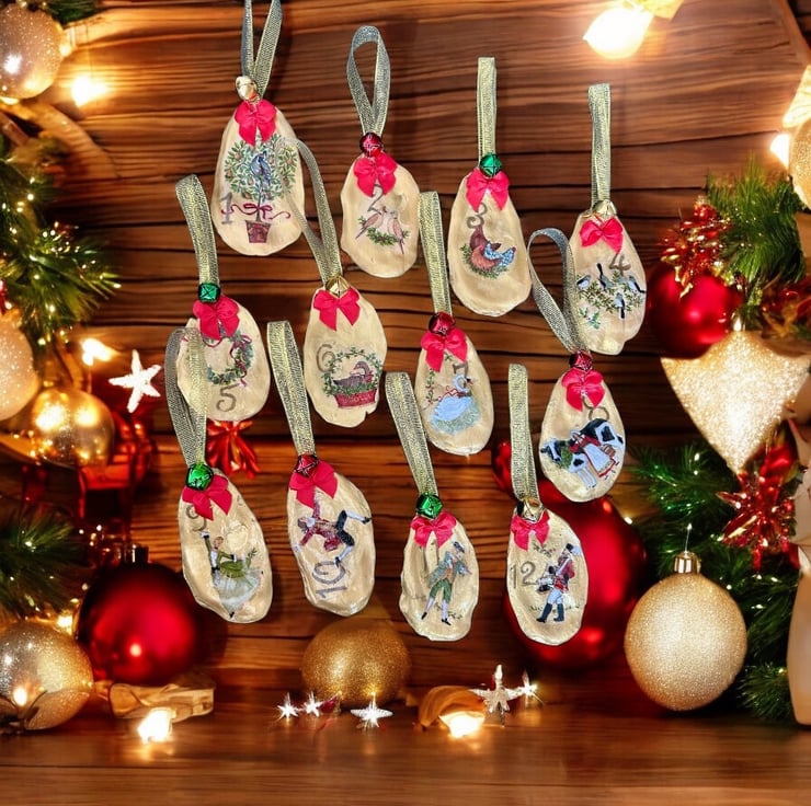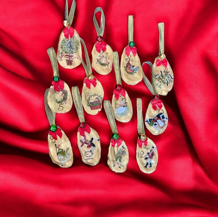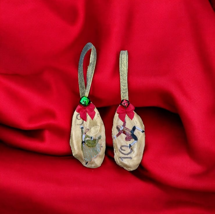 Christmas Oyster Shell Decoupage - Set of 12 days of Christmas 7-10cm Length Size and patterns may differ very slightly due to all being handmade but they are all beautiful.