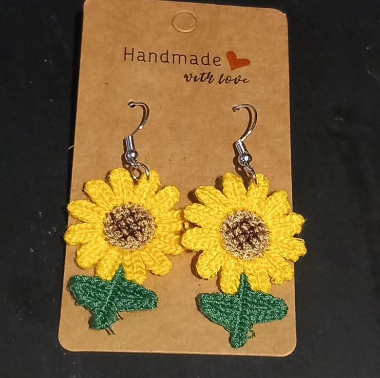 Sunflower crochet Earrings crochet stainless steel dangly earrings OOAK