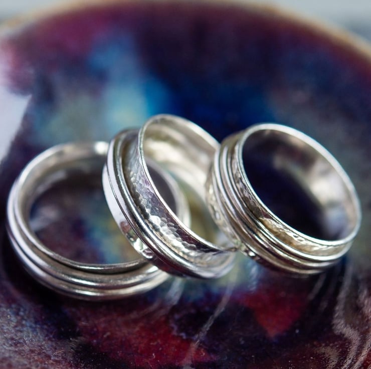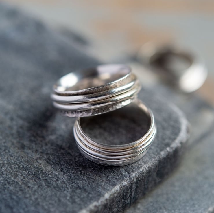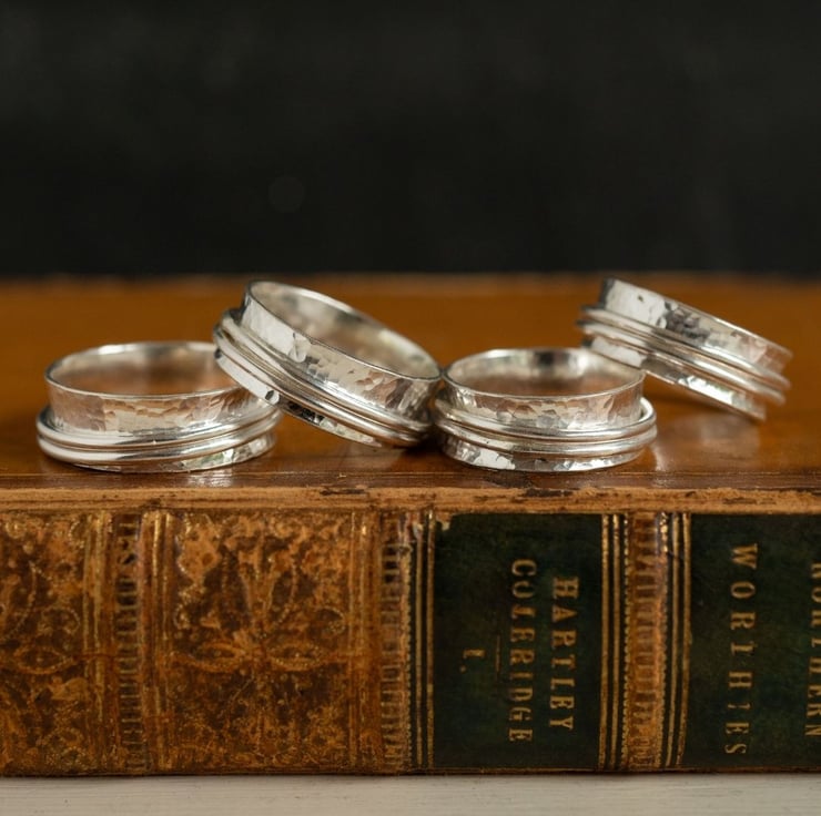 We are fidgety - not good at sitting still. It's nice to have a piece of handmade jewellery which looks and feels amazing, as well as being tactile to play with when you are having absent, or present, thinking time. Spinner rings are really helpful for people with anxiety or who may feel overwhelmed. These are also known as anxiety rings and worry rings. Better to play with a shiny piece of jewellery than it is to scratch or pick at skin! And they're timeless and elegant, and reflect the light beautifully - you'll always get lots of compliments about yours!