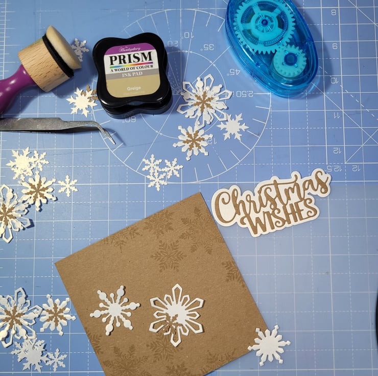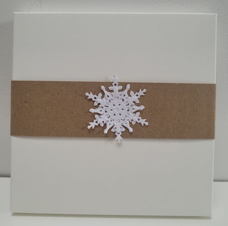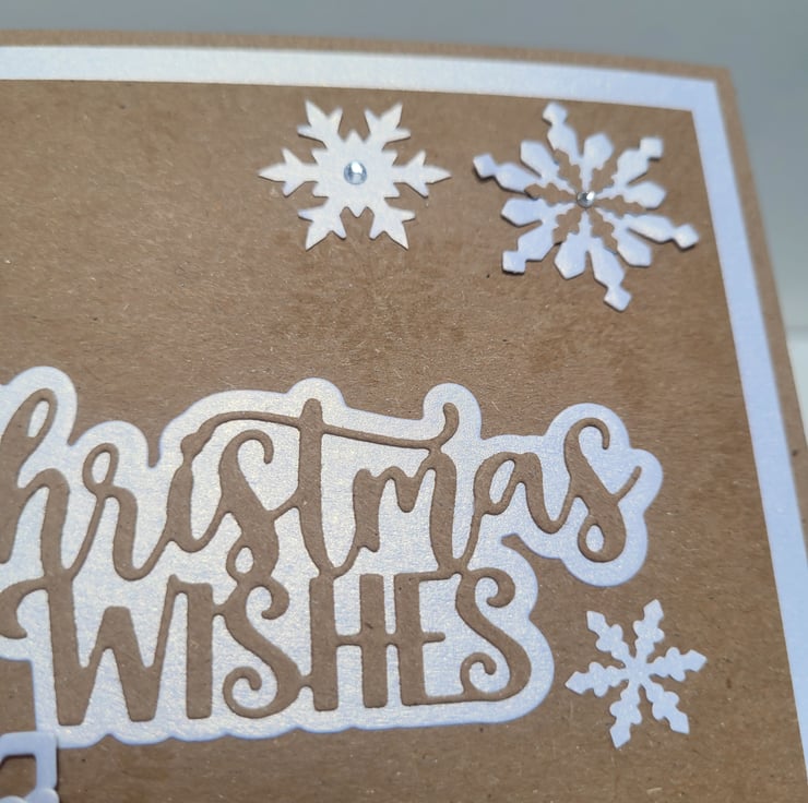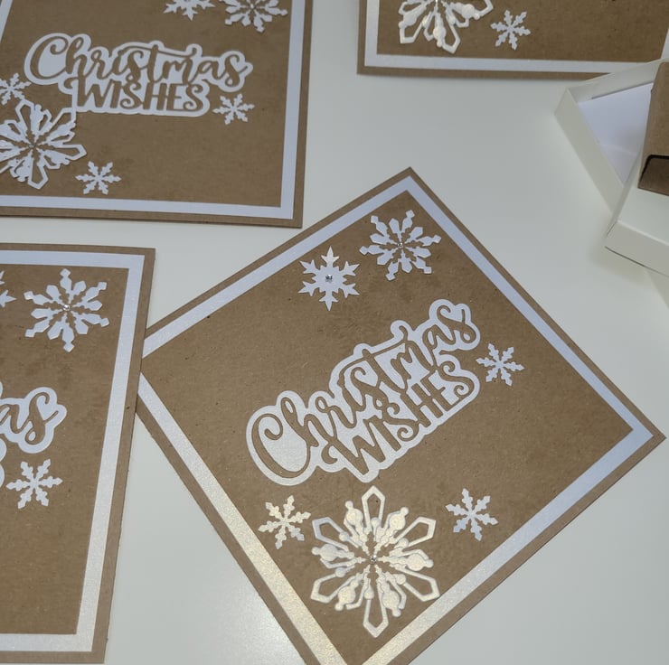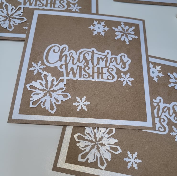 Set of 4 Snowflake Christmas Wishes Handmade Cards - Kraft & Pearlised White