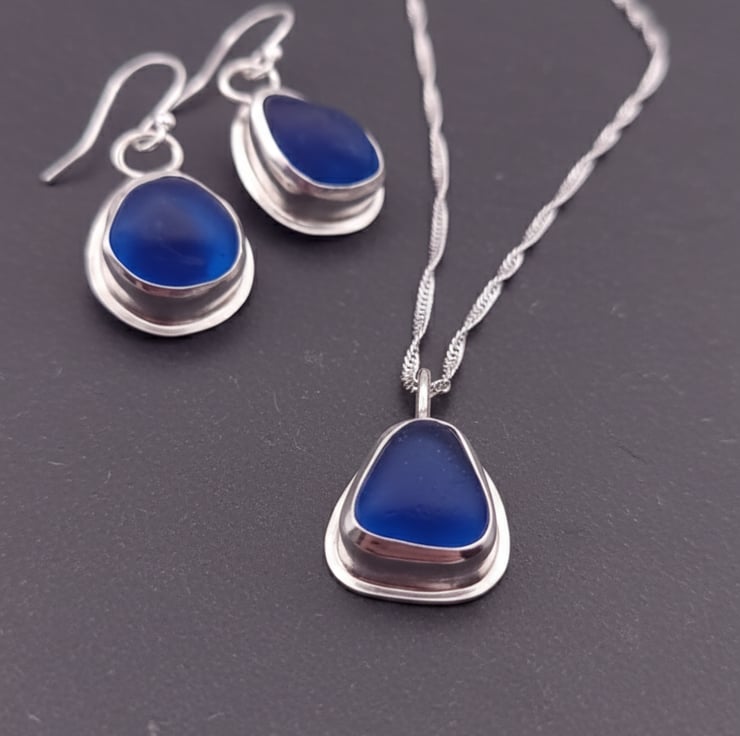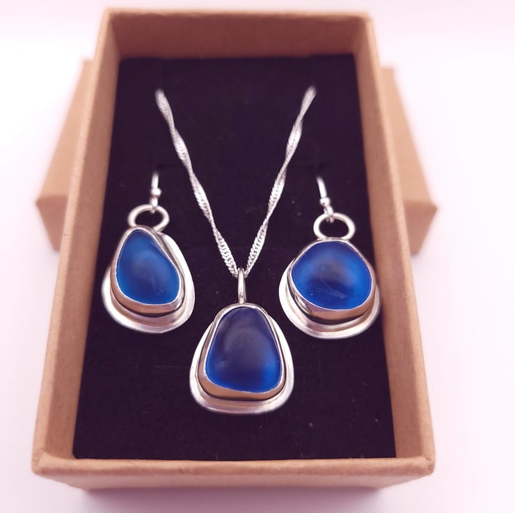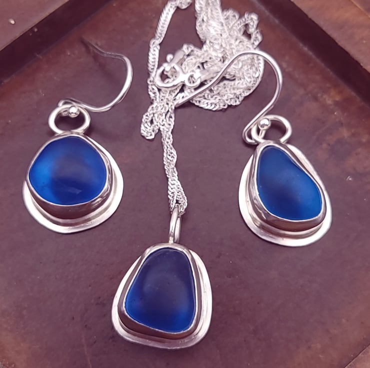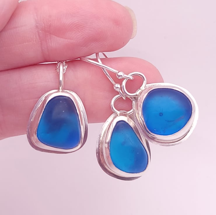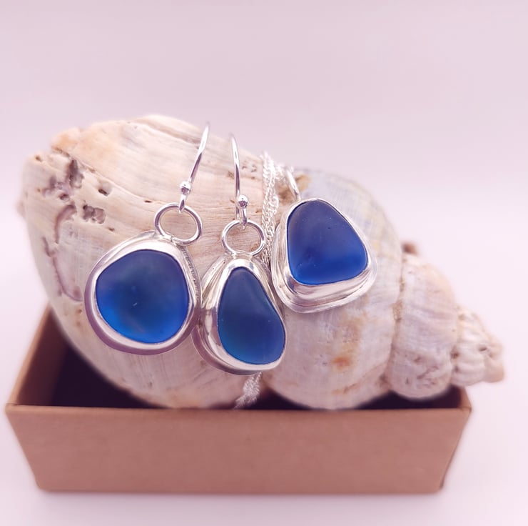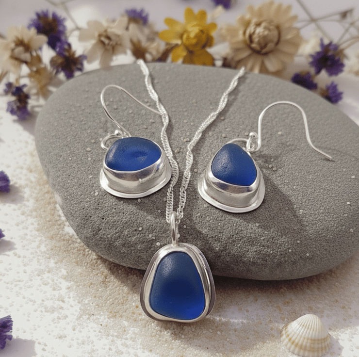 Set in Sterling silver bezels this set of beautiful vivid Cobalt blue seaglass is the perfect birthday or Anniversary gift.