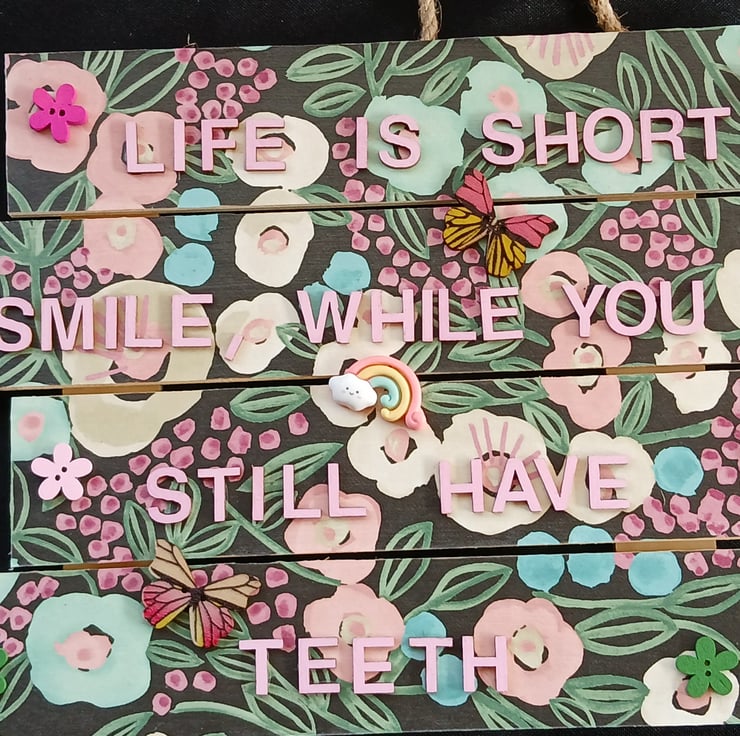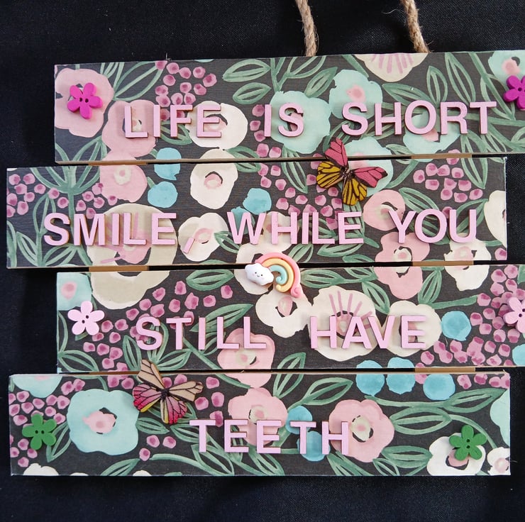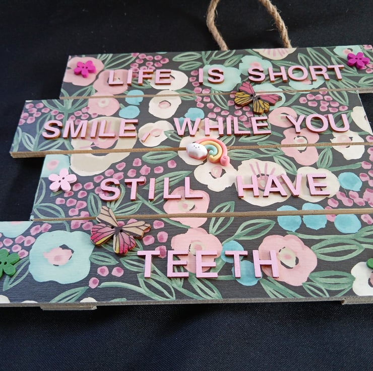 Hand decorated hanging wooden sign