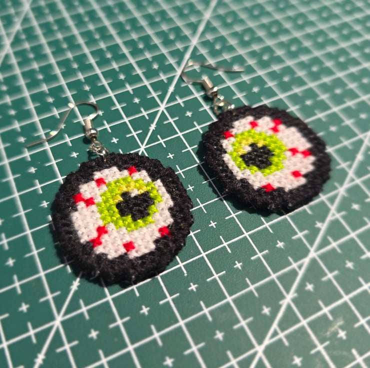 Embrace the charm of handmade. Made only by me, my cross-stitch earrings offer a truly unique way to express your style. The detailed embroidery makes each pair a conversation starter and a delightful addition to your outfit. Perfect for gifts all year round or treating yourself!