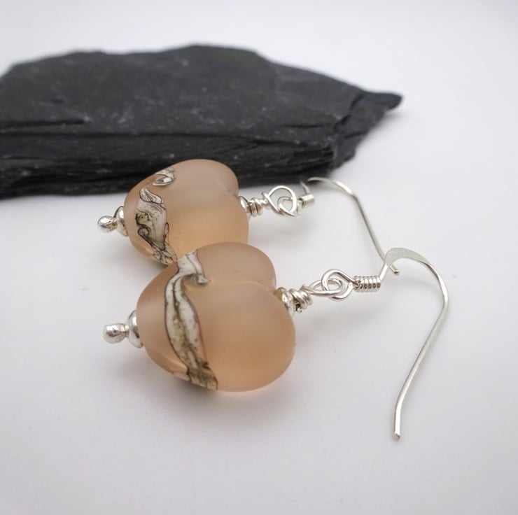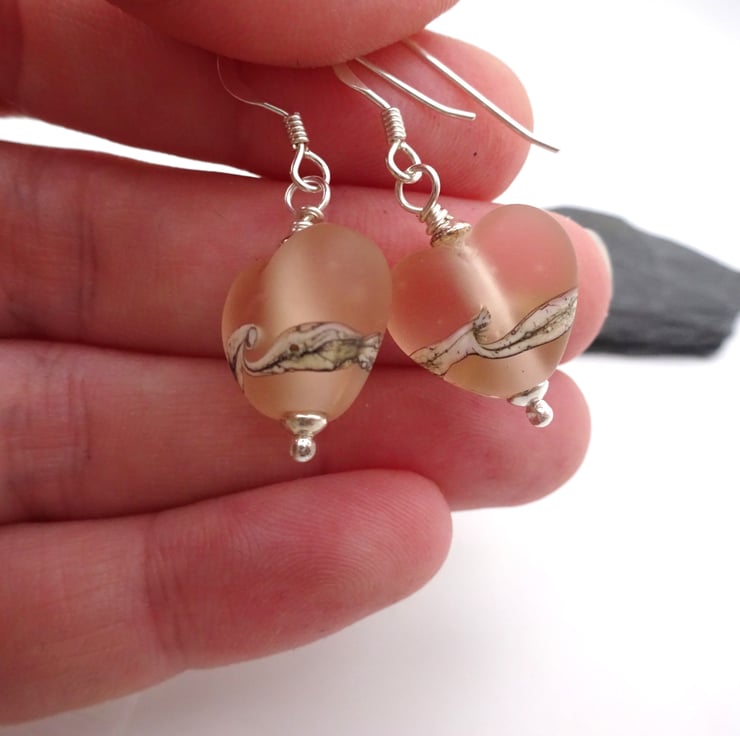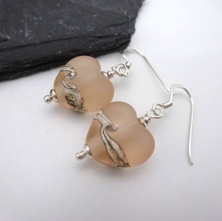 The beads have been handmade by me using peach pink and ivory glass and shaped into hearts.