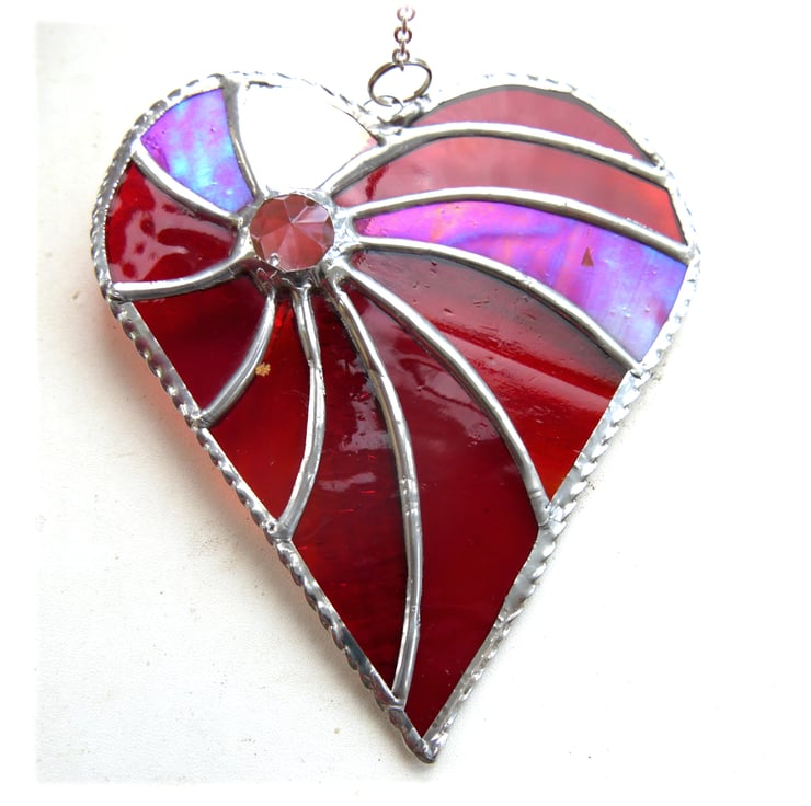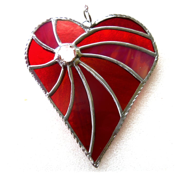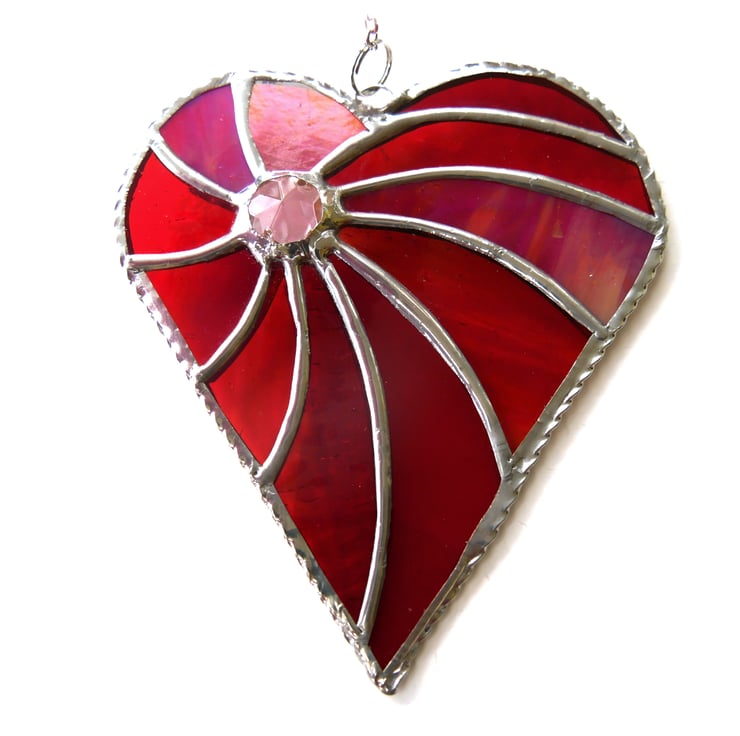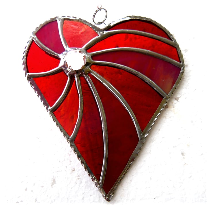 I've made the heart from 5 different types and shades of red glass swirling out from a lovely gsparkling crystal.
