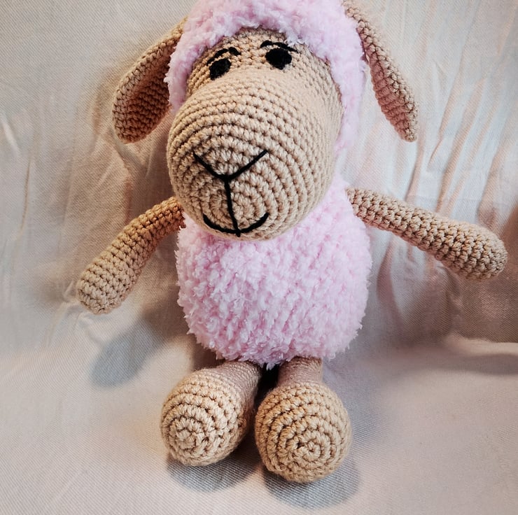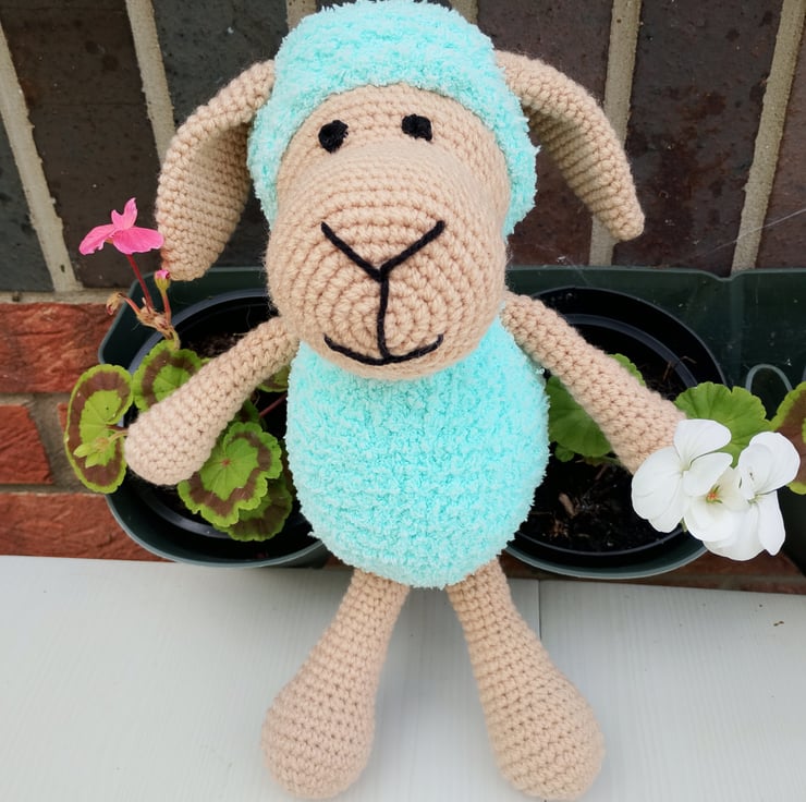 So I was watching Shaun the sheep with my grandson and thought how good it would be to have a sheep to hug. Looking around I found others had the same idea so this is my version of a lovable lamb !! Squishy is approx 30cm tall, his body and head are made in lightly stuffed soft 'Cuddles' yarn and the rest of him in DK wool, so he is washable with care. His eyes and features are hand sewn so safe for very young owners. While the picture shown is in lovely soft green, Squishy is also available in baby pink, bright yellow, cerise pink and of course white. ( Please state colour when ordering)