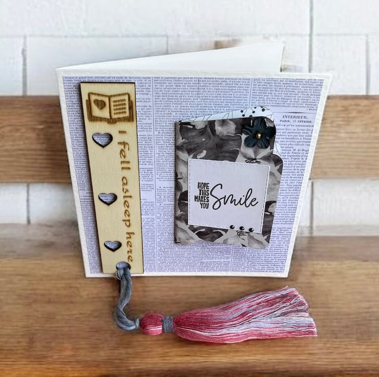 This card has a ready to gift surprise with a handmade bookmark and a little book of inspirational quotes.