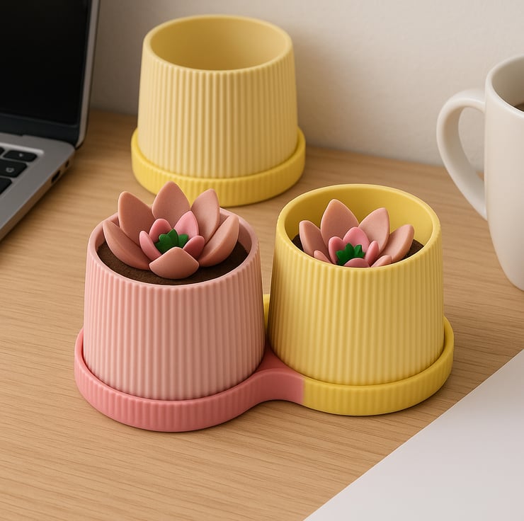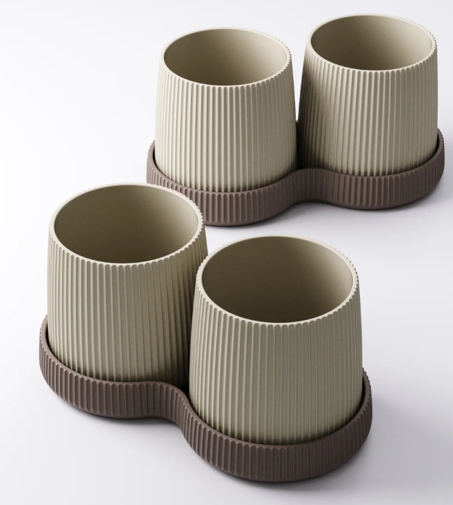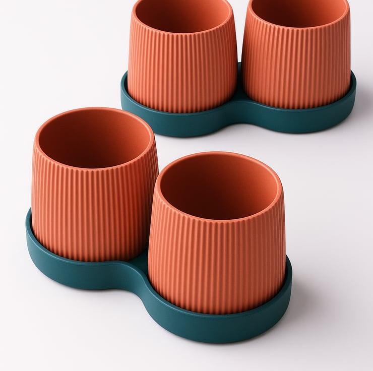 Brighten your home with this elegant twin planter set, designed for modern interiors with a love for texture and simplicity. Each set includes two ribbed pots nestled in a stylish matching tray, perfect for desks, windowsills, or gifting.