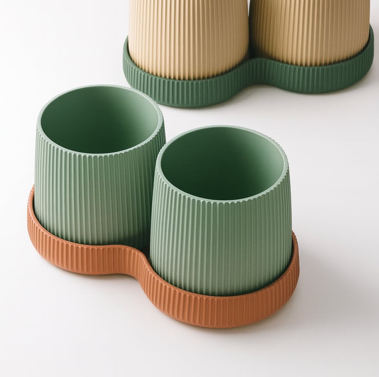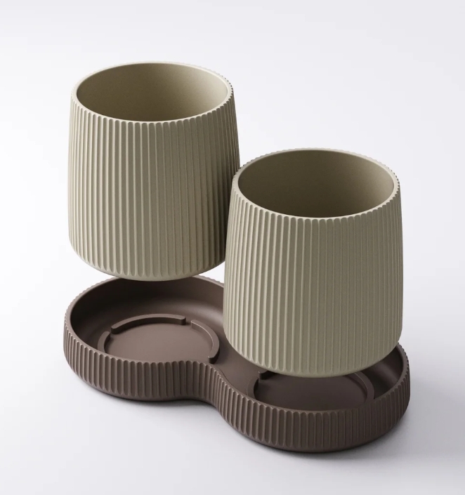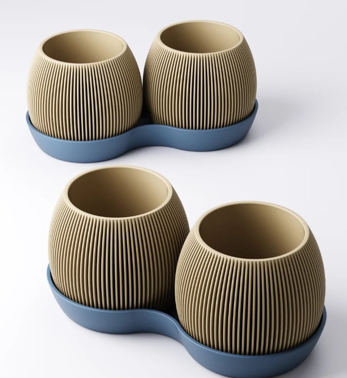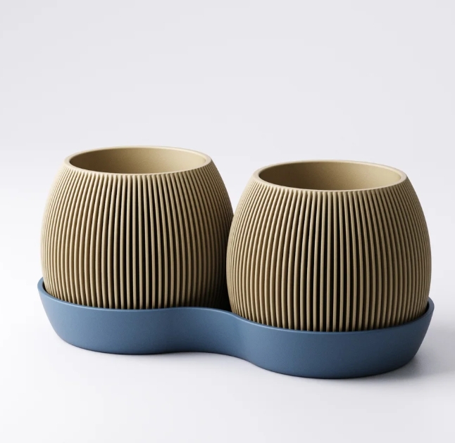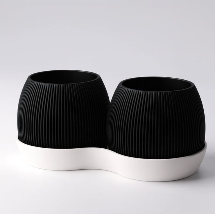 Twin pots are connected via a sleek base tray