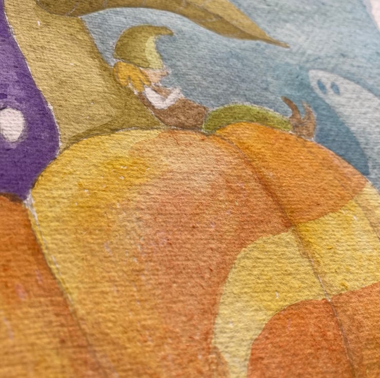 Spooky Nap, Pumpkin, watercolour paper, 20cm x 20cm original art.