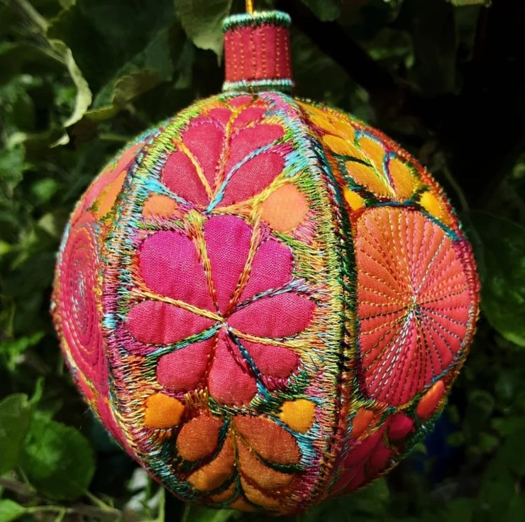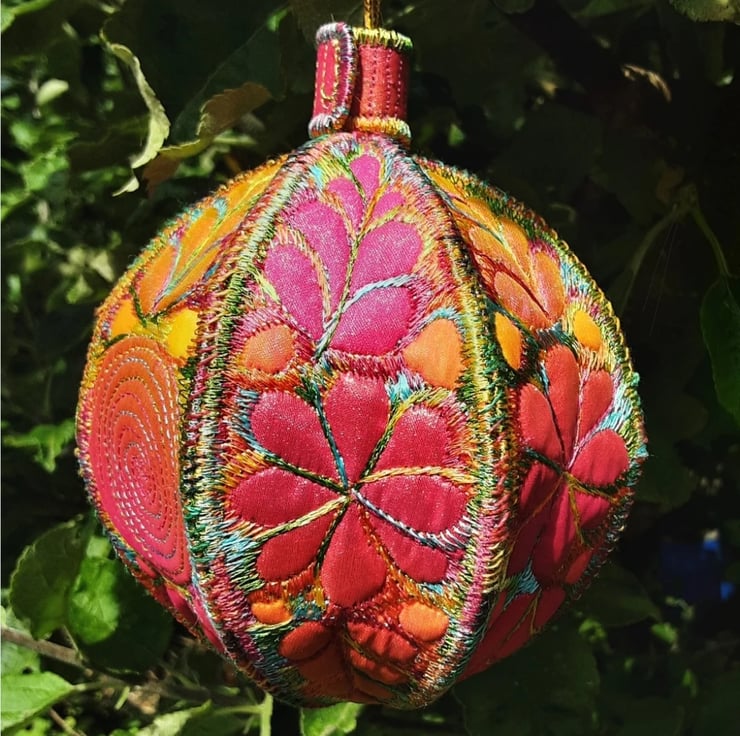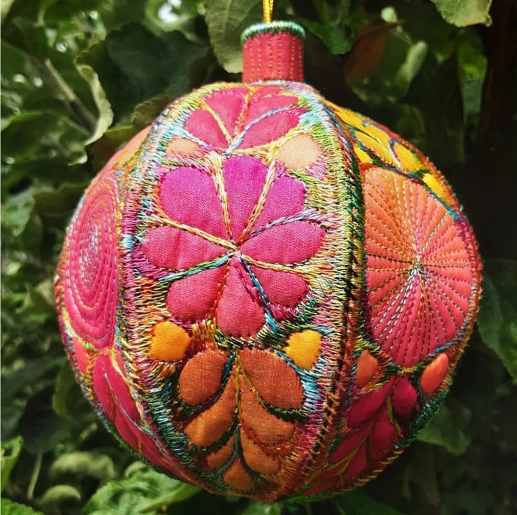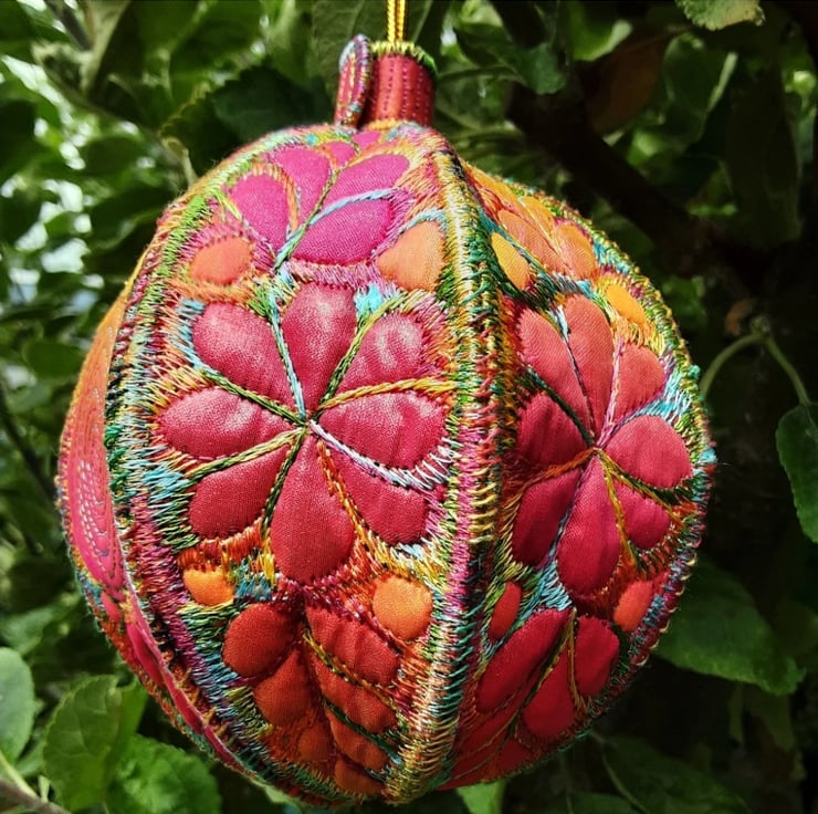 This is a handmade machine stitched textile Christmas bauble decoration