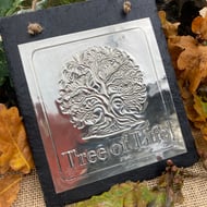 A beautiful plaster Buddha head mounted on a slab of natural wood, strung ready to hang indoors or out. The item is weatherproof although I would protect it in really bad weather.