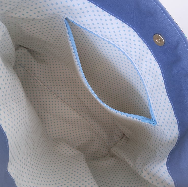 Inside the bag you will find the lining, which is a matching cream with blue stars print by Tilda.