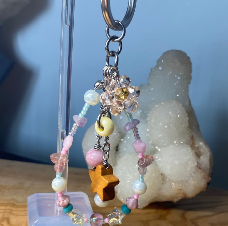 Cherry Quartz, wooden bead, glass beads, amethyst beads