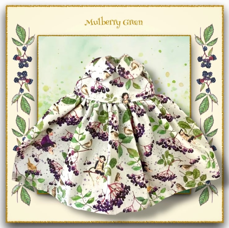 A beautiful little dress in designer cotton - Elder Elves by Daniela Drescher, to fit the Mulberry Green characters.