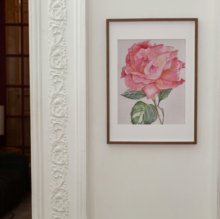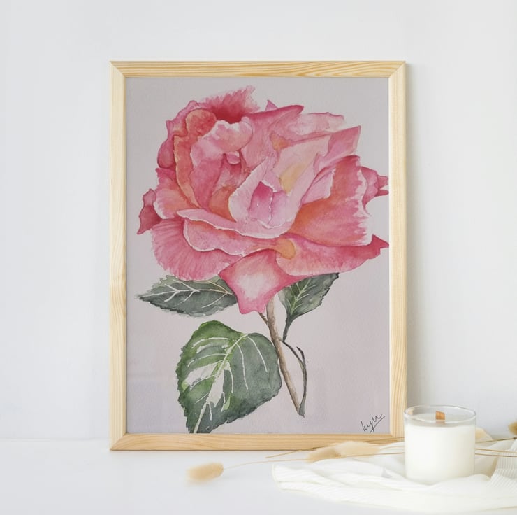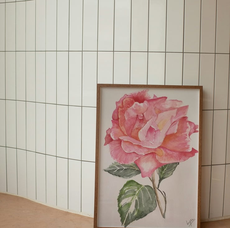 This A4 print features a beautiful Pink Rose, painted in soft watercolours using shades of pink and red. The delicate floral detail makes it a lovely focal point for any room, whether displayed on its own or as part of a gallery wall.