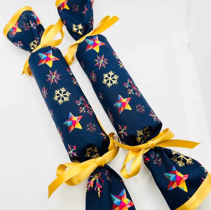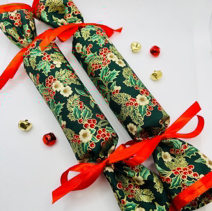 These attractive reusable fabric Christmas crackers are perfect for your Christmas dinner table and such a good idea to save on paper waste .