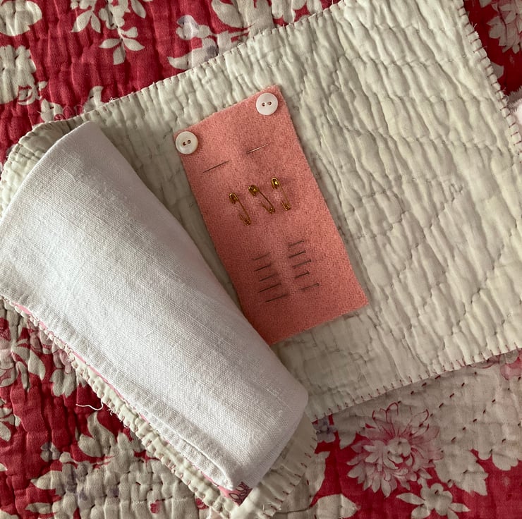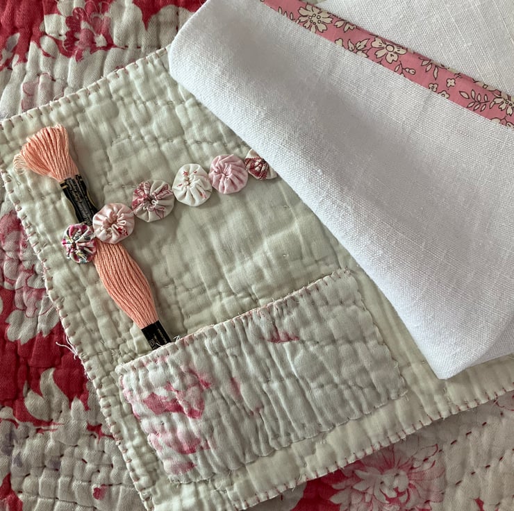 A gorgeous vintage quilt folder, providing you with storage for a small embroidery project whilst travelling.