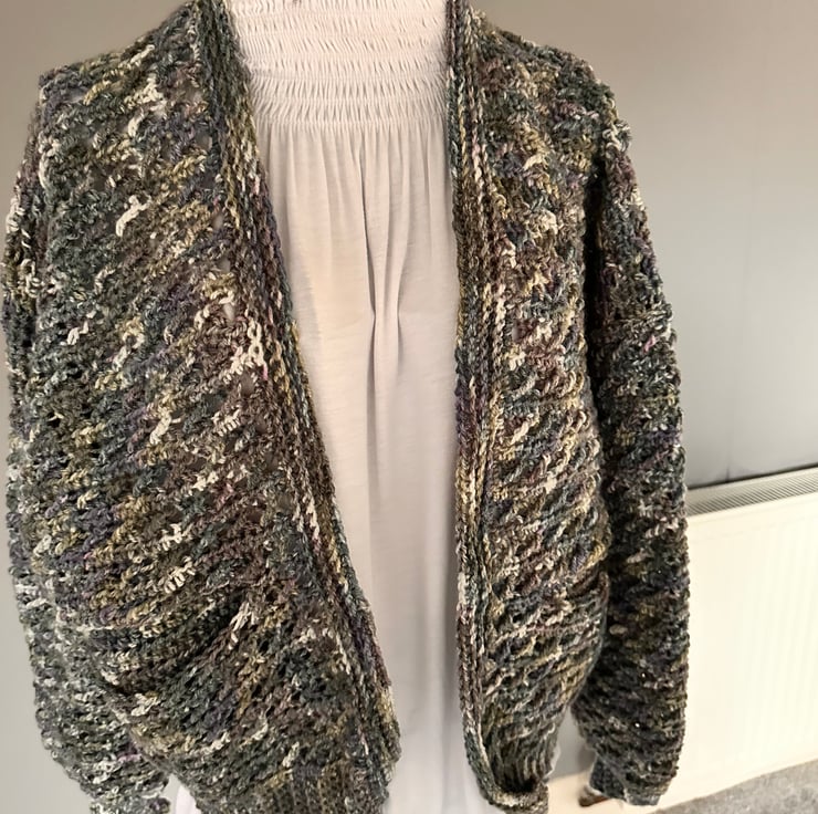 I love knitting and crochet having learnt many moons ago as a little girl. I love this cardigan it is so comfy and is a great addition to many outfits.