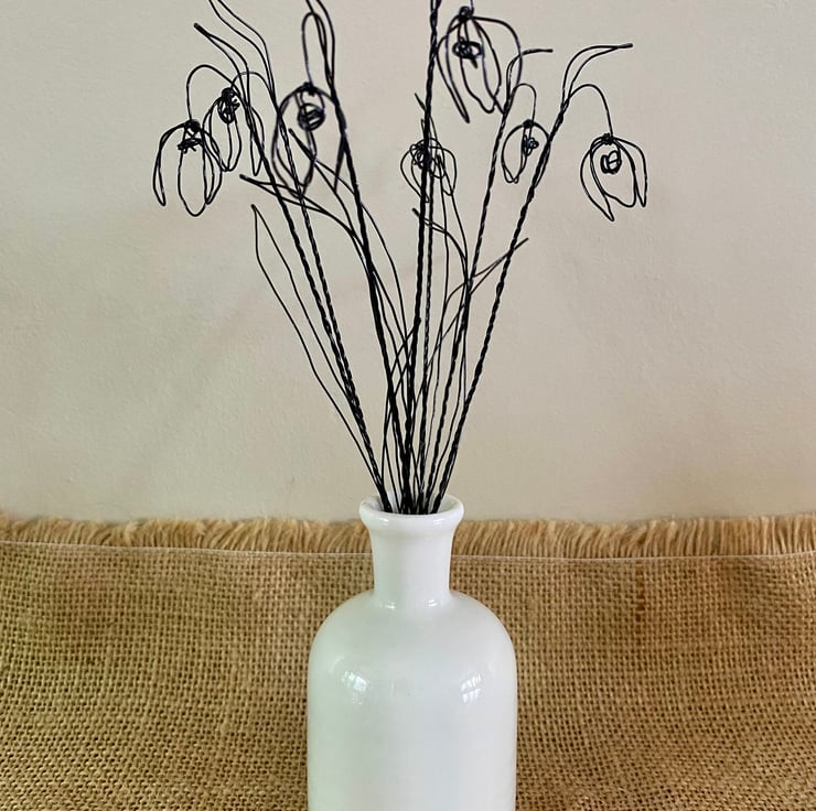 Seven delicately crafted wire snowdrop flowers (vase not included).