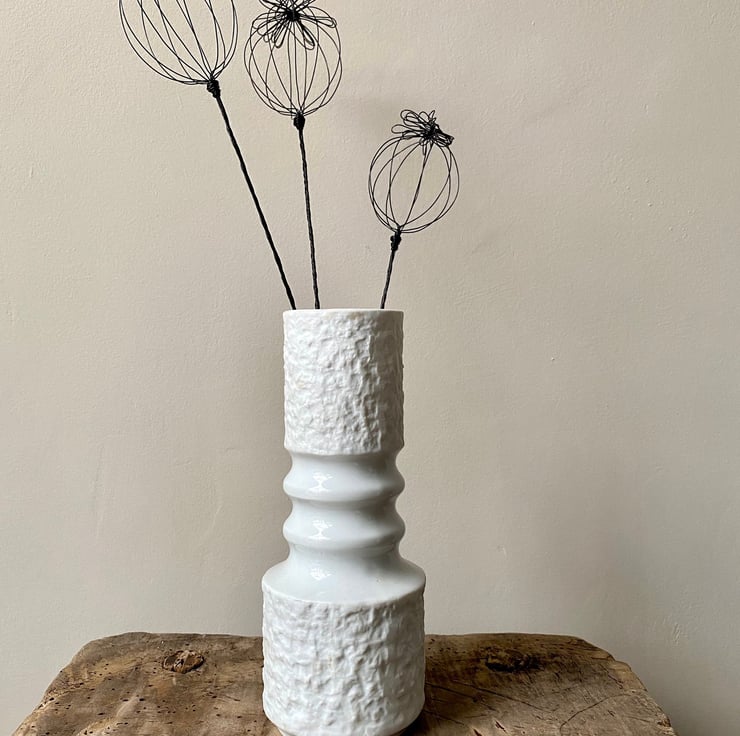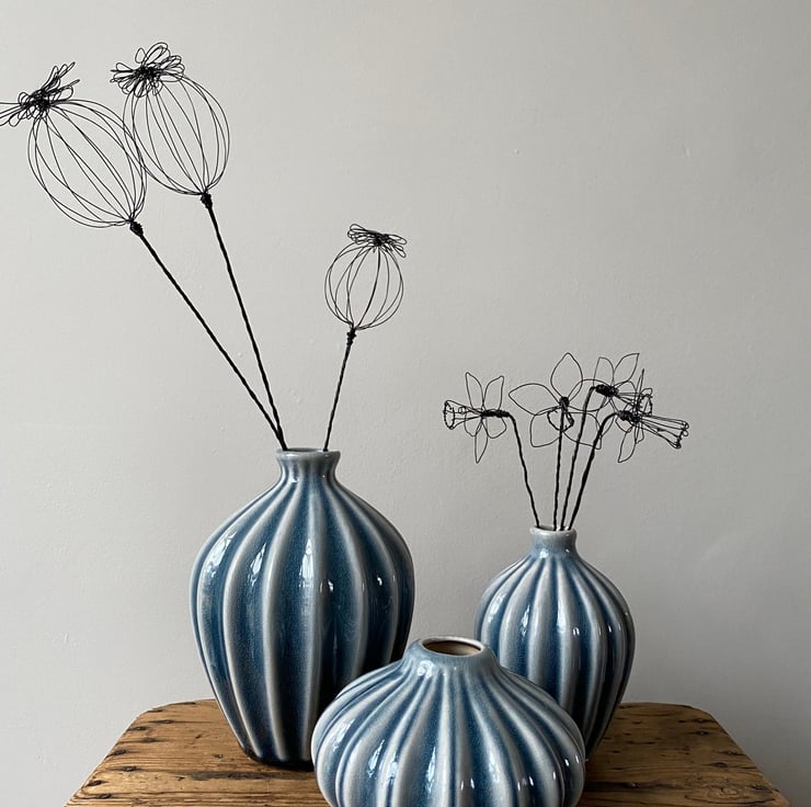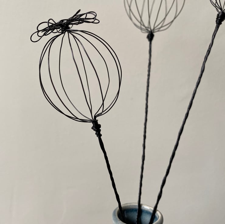 Set of three handcrafted wire poppy seed heads, two large, one small